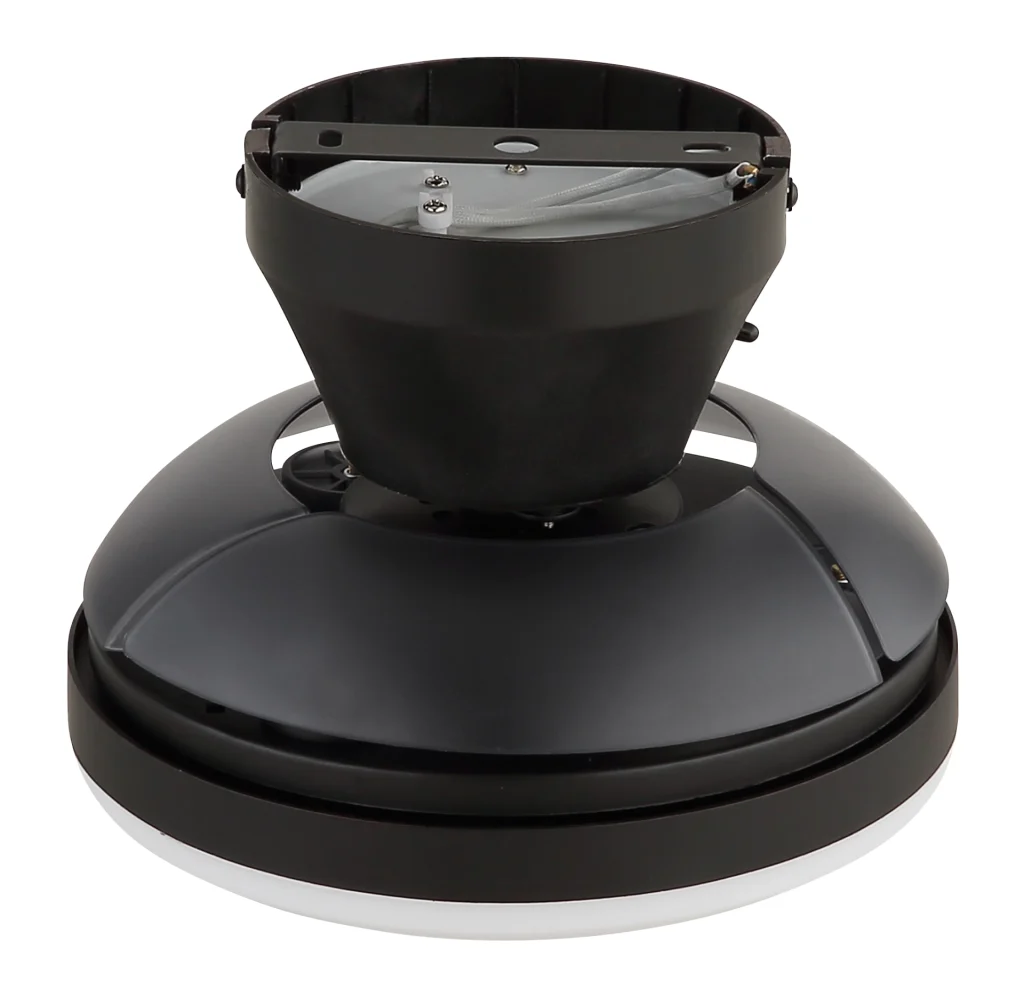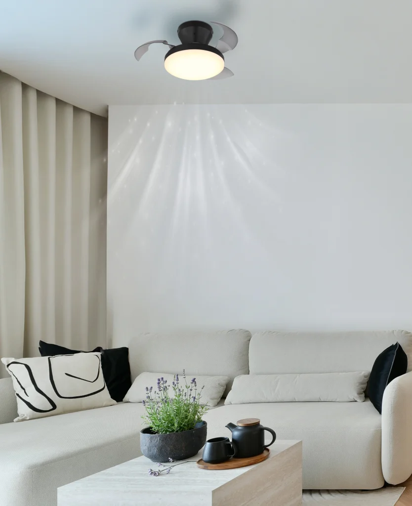 Okrugli plafonski ventilator ZAVALA kombinuje moderan dizajn sa maksimalnom funkcionalnošću, obezbeđujući prijatnu cirkulaciju vazduha u dnevnim ili radnim prostorima. Tri sklopive lopatice napravljene od visokokvalitetne plastike fleksibilno se prilagođavaju vašim potrebama: izdužene za optimalan protok vazduha, presavijene za diskretan izgled. Telo je od crne mat i dimljene providne plastike, stvarajući elegantan, savremen izgled. Opalni plastični abažur pruža svetlost bez odsjaja, dok integrisana LED dioda isporučuje 900 lumena sa podesivom temperaturom boje od 2700 K do 6500 K. Daljinski upravljač omogućava zatamnjivanje, fiksiranje boje i funkciju memorije za poslednje podešavanje. Pored toga, noćno svetlo nudi nežno osvetljenje. Sa prečnikom od 480 mm, ZAVALA se savršeno uklapa u prostorije srednje veličine. Kombinacija sklopivih lopatica, prigušive LED diode i stilskog dizajna čini ovaj plafonski ventilator i funkcionalnim i dekorativnim.