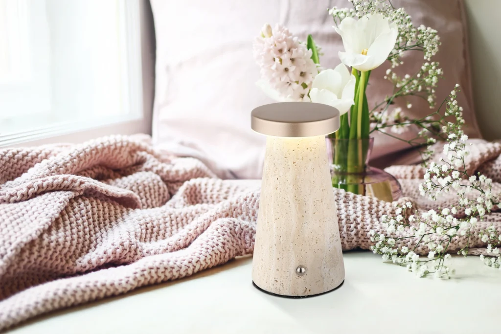 Stona lampa Travertine Stone Gray fokusira se na elegantan dizajn i funkcionalnost. Njeno telo napravljeno od sivog travertina i mat metalni abažur boje kapućina daju lampi bezvremensku eleganciju. Abažur od opal plastike obezbeđuje nežnu, prijatnu raspodelu svetlosti. Pomoću bezstepenog dodirnog dimera, osvetljenost se može individualno podesiti, a boje se mogu fiksirati po želji. Praktična funkcija memorije čuva vaše željeno podešavanje i time obezbeđuje maksimalnu udobnost. Lampa nudi svetlosni izlaz od 138 lumena i omogućava kontinuirano podešavanje temperature boje (CCT) od 2700 K do 4500 K kako bi se uvek stvorilo pravo svetlosno raspoloženje. Takođe svetli tokom punjenja i potrebno je približno 4 sata da se potpuno napuni, sa trajanjem osvetljenja od približno 6 sati. Uključujući USB kabl za punjenje i adapter, svetlo je spremno za trenutnu upotrebu. Dodirna kontrola uključivanja/isključivanja čini rukovanje posebno praktičnim. Uključuje LED – idealno za moderne prostorije.
