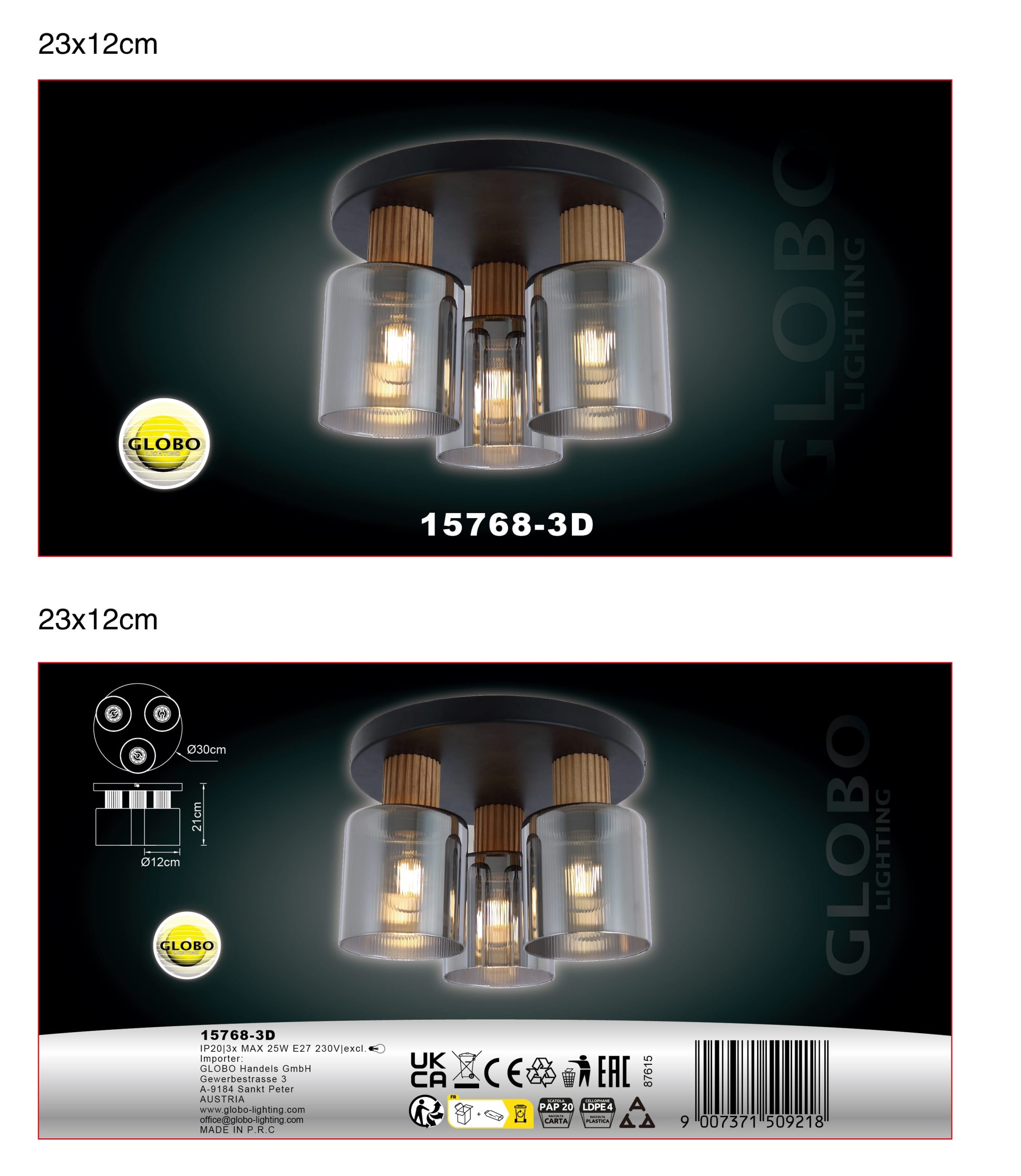 Plafonska lampa ALEIDIS kombinuje tri elegantna stakla sa drvenim aplikacijama u okruglom dizajnu. Crno, mat metalno kućište i dimljeno staklo u kombinaciji sa tamnosmeđim drvetom postavljaju dekorativne akcente u dnevnim i trpezarijskim sobama. Pogodno za 3xE27 sijalice (ekskluzivno).
