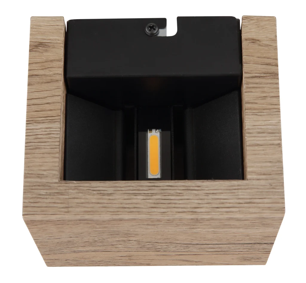 Kvadratna zidna lampa ALINA impresionira svojim modernim dizajnom i funkcionalnošću. Telo napravljeno od tamnosmeđeg MDF-a u izgledu drveta savršeno se dopunjuje crnim mat metalom. Sa veličinom širine 132 mm i visine 113 mm, zidna lampa se harmonično uklapa u svaku prostoriju. Svetiljka ima snažnu LED sijalicu od 8 W koja proizvodi izlaz od 800 lumena i nudi prijatnu boju svetlosti od 3000 K. Svetlosni konus je podesiv, tako da možete prilagoditi osvetljenje prema vašim potrebama. Zidna lampa ALINA kombinuje stilski dizajn sa praktičnom funkcionalnošću, što je čini idealnim izborom za moderno i udobno osvetljenje u vašem domu.