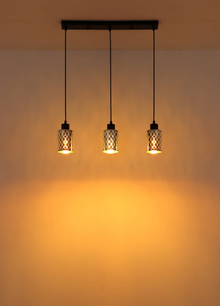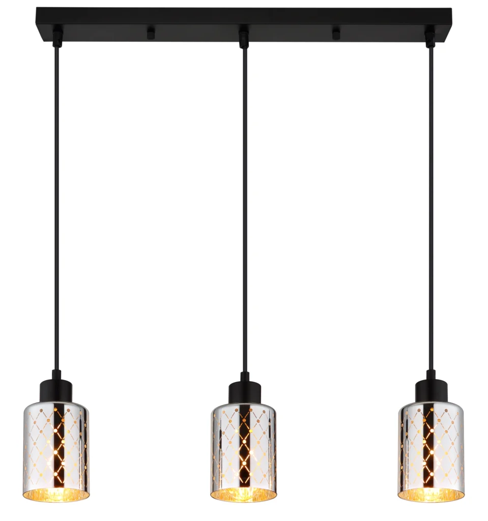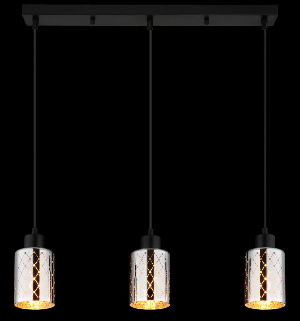 Viseća lampa ALONSO kombinuje moderan dizajn sa fascinantnim akcentima osvetljenja. Tri cilindrična abažura od providnog, hromiranog stakla sa nežnim dekorativnim perforacijama obezbeđuju atmosfersku igru svetlosti i postavljaju stilske akcente u prostoriji. Izduženo telo od mat crnog metala daje lampi elegantan, savremen izgled i savršeno se usklađuje sa širokim spektrom stilova nameštaja – od modernog do industrijskog. Sa dužinom od 580 mm i širinom od 90 mm, lampa je idealna za osvetljavanje trpezarijskih stolova, pultova ili dnevnih boravka. Zahvaljujući E27 grlu (bez sijalica), boja i intenzitet svetlosti mogu se individualno odabrati. Bilo da je to toplo svetlo za prijatne večeri ili jarko svetlo za jasan pogled – ALONSO se prilagođava vašim potrebama. Funkcionalan, kao i dekorativni akcenat koji stilski kombinuje dizajn i atmosferu.