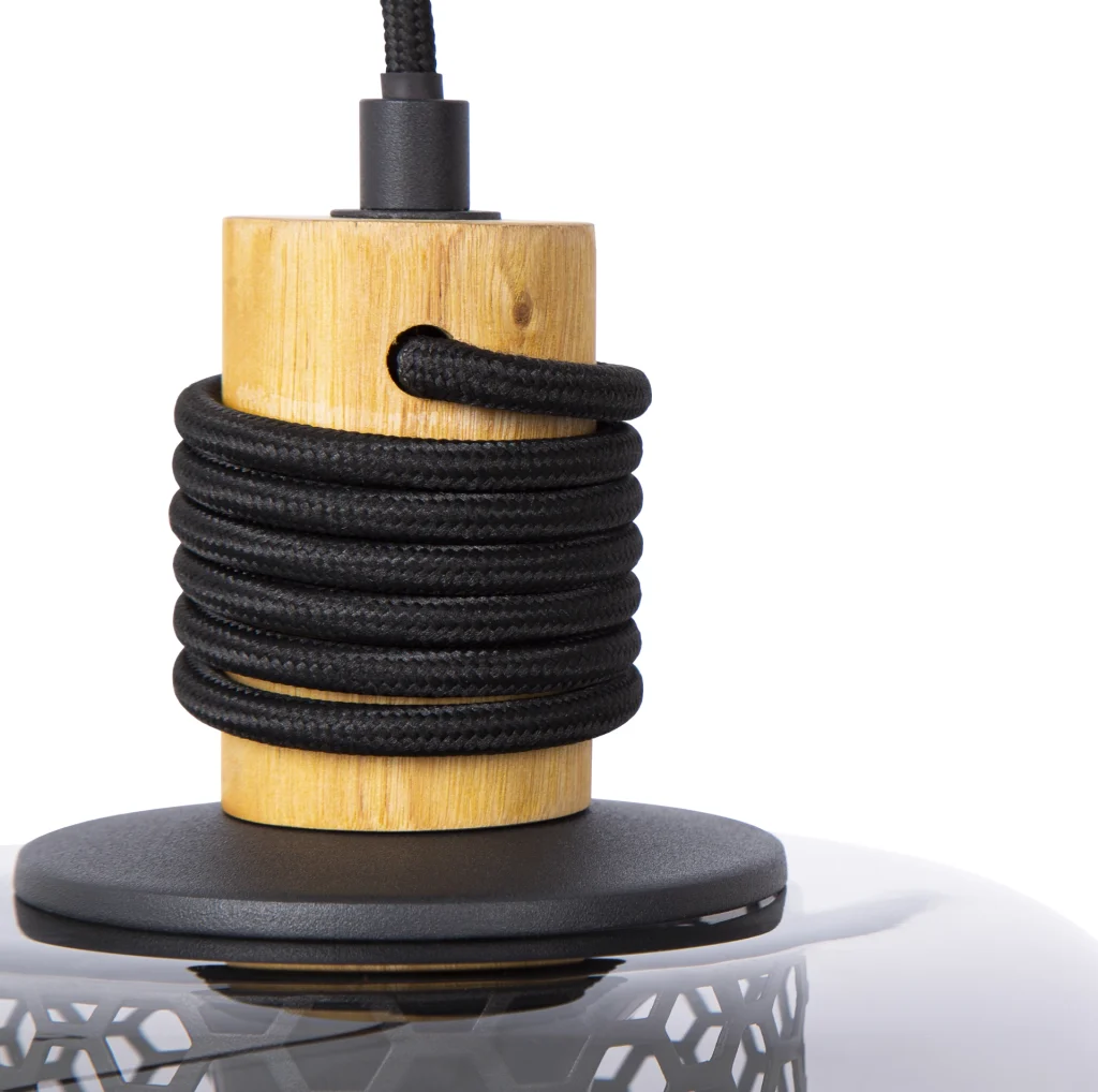 Viseća lampa ANDO je moderan dizajnerski element koji će ulepšati svaku prostoriju. Sa prečnikom od 200 mm i visinom od 1500 mm, idealna je za osvetljenje kuhinjskih ostrva ili trpezarija. Crno metalno i drveno telo u kombinaciji sa dimljenim staklom stvara savremenu estetiku. Podesivost visine omogućava individualno podešavanje, tako da se lampa može savršeno postaviti iznad stolova i drugog nameštaja. Ova lampa zahteva sijalicu E27 (nije uključena) i pogodna je za snagu do 40W. Viseća lampa ANDO unosi moderan šarm i privlačnu svetlost u vaš dom.