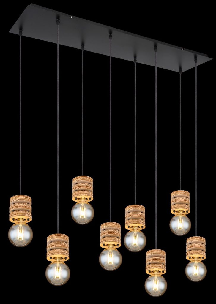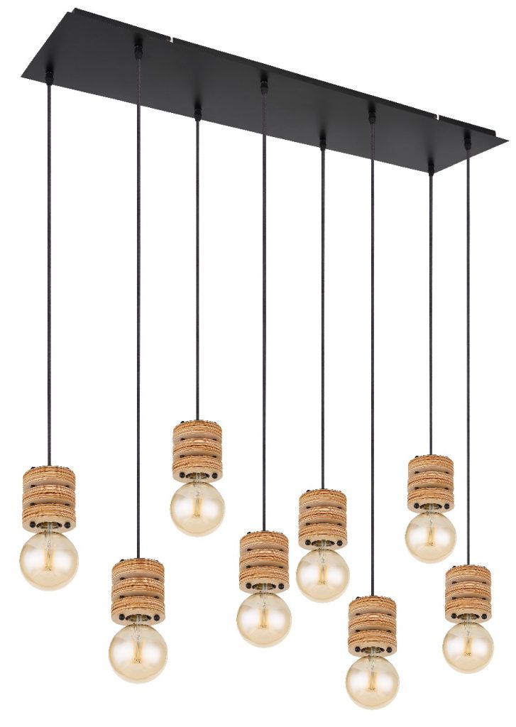 Sa ovom modernom visilicom iz serije ANGELINE (98×24 cm) dobijate divan detalj za vaš dom. Sastoji se od osam E27 grla obloženih MDF prstenovima, koji su fiksirani za crne kablove. Ona mogu biti opremljena odgovarajućim sijalicama po vašem izboru, što vam pruža mogućnost da pojedinačno odredite boju svetla i jačinu. Pored toga, visina lampe može da se podesi i do 120 cm. Sa drugim modelima iste serije možete upotpuniti celokupnu sliku u enterijeru.