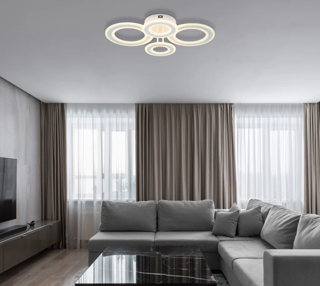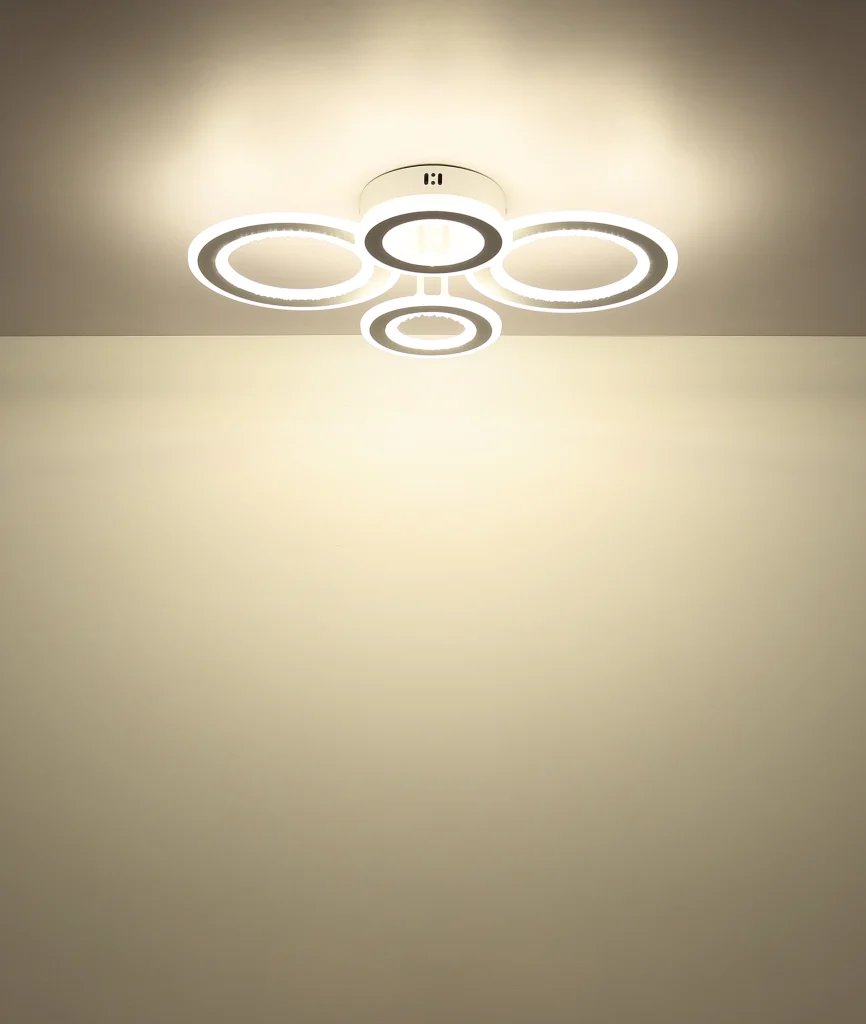 Plafonska svetiljka ANTHONY kombinuje moderan dizajn sa visokokvalitetnom LED tehnologijom, stvarajući stilske akcente u svakoj prostoriji. Njeno pravougaono mat belo metalno kućište izgleda elegantno i bezvremenski, dok četiri pomerana prstena stvaraju dinamičan i zanimljiv vizuelni efekat. Svaki prsten ima unutrašnju kristalnu ivicu koja svetluca i prelama svetlost, dok spoljašnja akrilna ivica obezbeđuje ravnomerno, meko osvetljenje. Sa dimenzijama od 590 mm dužine i 420 mm širine, plafonska svetiljka ANTHONY nudi optimalno prisustvo bez preopterećenja prostora. Integrisana LED dioda pruža impresivnih 5500 lumena sa podesivom temperaturom boje od 3000 K do 6500 K, od toplo bele do neutralne bele. Fiksne boje i funkcija memorije omogućavaju svetlu da se seti poslednjih podešavanja. ANTHONY je savršena kombinacija moderne elegancije, efikasnog osvetljenja i funkcionalne svestranosti, idealna za dnevne sobe, trpezarije ili kancelarije koje cene stilsko osvetljenje.