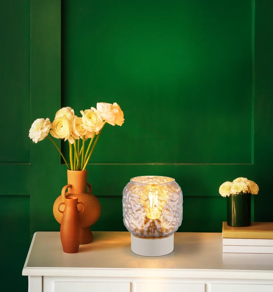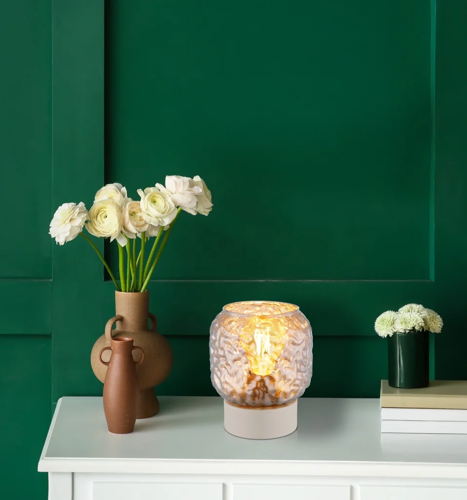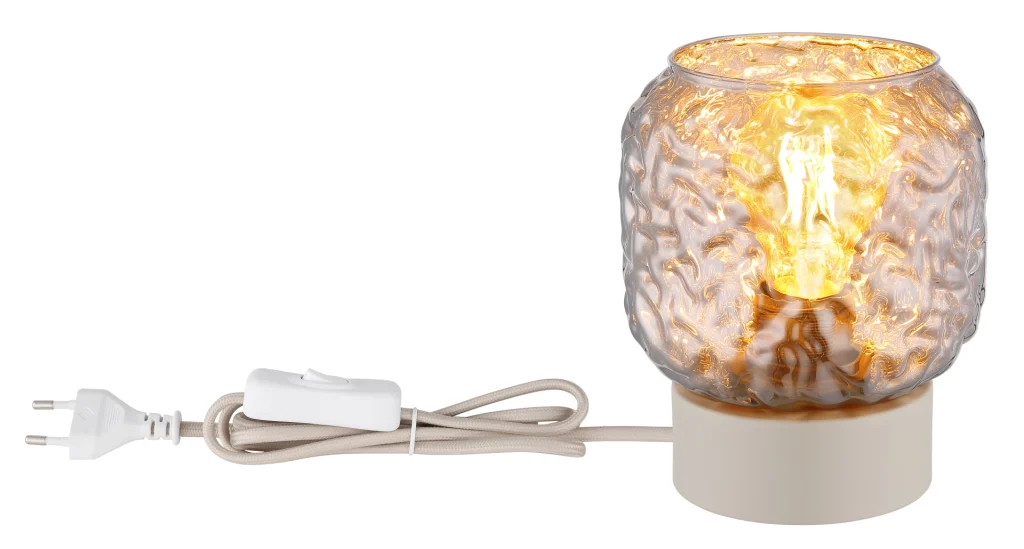 Stona lampa ANTONIO impresionira svojim okruglim, kompaktnim dizajnom i lukovičastim staklenim abažurom sa prepoznatljivim udubljenjima, što lampi daje živahan i jedinstven izgled. Hromirani stakleni abažur boje dima stvara elegantnu igru svetlosti i pruža toplu, privlačnu atmosferu u svakoj prostoriji. Mat bež metalno kućište harmonično dopunjuje dizajn i daje lampi moderan, bezvremenski izgled. Sa prečnikom od 140 mm, ANTONIO je idealna za male stolove, noćne stočiće ili komode. Praktični prekidač na kablu omogućava lako i udobno rukovanje sa vašeg mesta. Lampa je dizajnirana za E27 sijalice (nisu uključene), tako da možete prilagoditi boju svetlosti i osvetljenost svojim željama. ANTONIO kombinuje visokokvalitetne materijale i jedinstven dizajn kako bi stvorio stilski izvor svetlosti koji savršeno spaja funkcionalnost i estetiku — elegantan atraktivan element za moderne životne prostore.