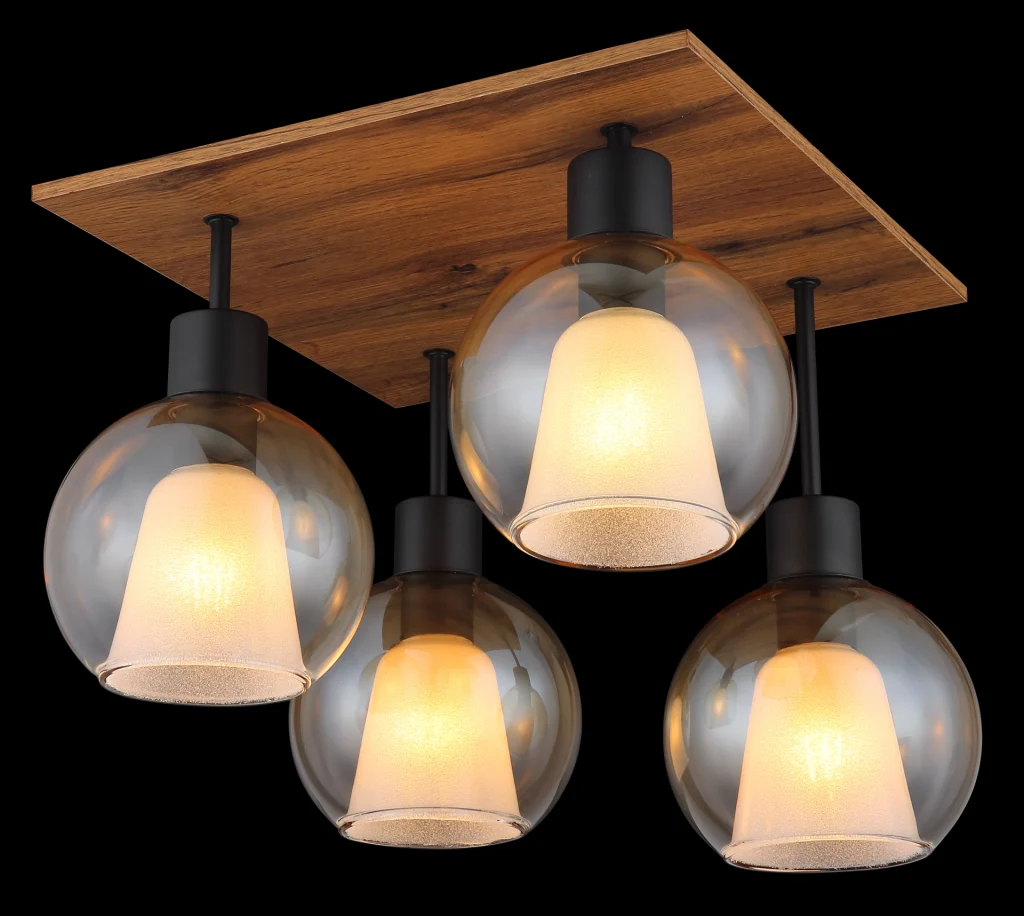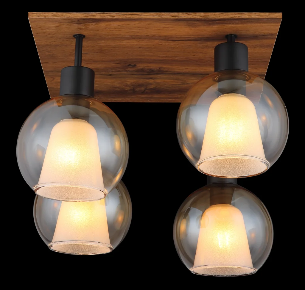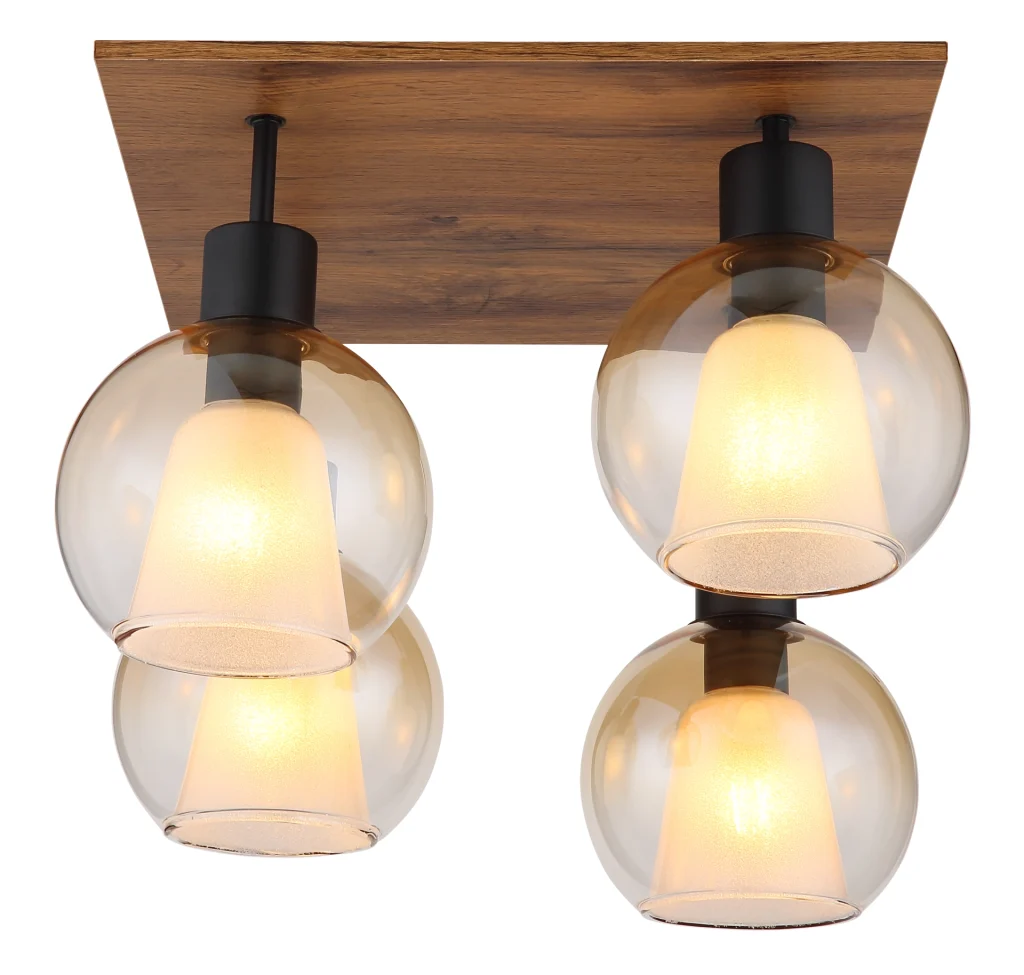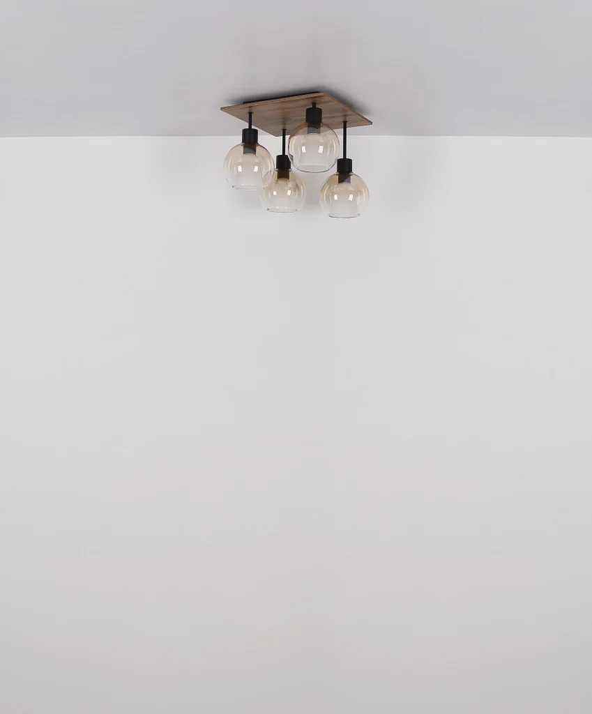 Plafonska lampa Barry I kombinuje moderan dizajn sa nostalgičnim vintage šarmom. Sa svojim kvadratnim oblikom i kompaktnim dimenzijama od 430 mm x 430 mm, izgleda savršeno proporcionalno i harmonično se uklapa u svaki dizajn prostorije. Telo napravljeno od mat crnog metala u kombinaciji sa MDF-om u izgledu tamnog drveta pruža moderan i elegantan izgled. Četiri sočiva, koja sadrže i ćilibarne i providne gradijentne elemente, stvaraju prelepu igru svetlosti i daju lampi poseban dodir. Pored toga, sočiva su opremljena unutrašnjim sočivima koja ne samo da pružaju zaštitu, već i optimizuju distribuciju svetlosti. Providni stakleni kristali postavljaju blistave akcente i stvaraju atmosfersku atmosferu. Plafonska lampa Barry I zahteva grlo E27 (osim E27), tako da možete odabrati pravu sijalicu za uređenje vašeg doma. Idealna za dnevne sobe, hodnike ili trpezarije!