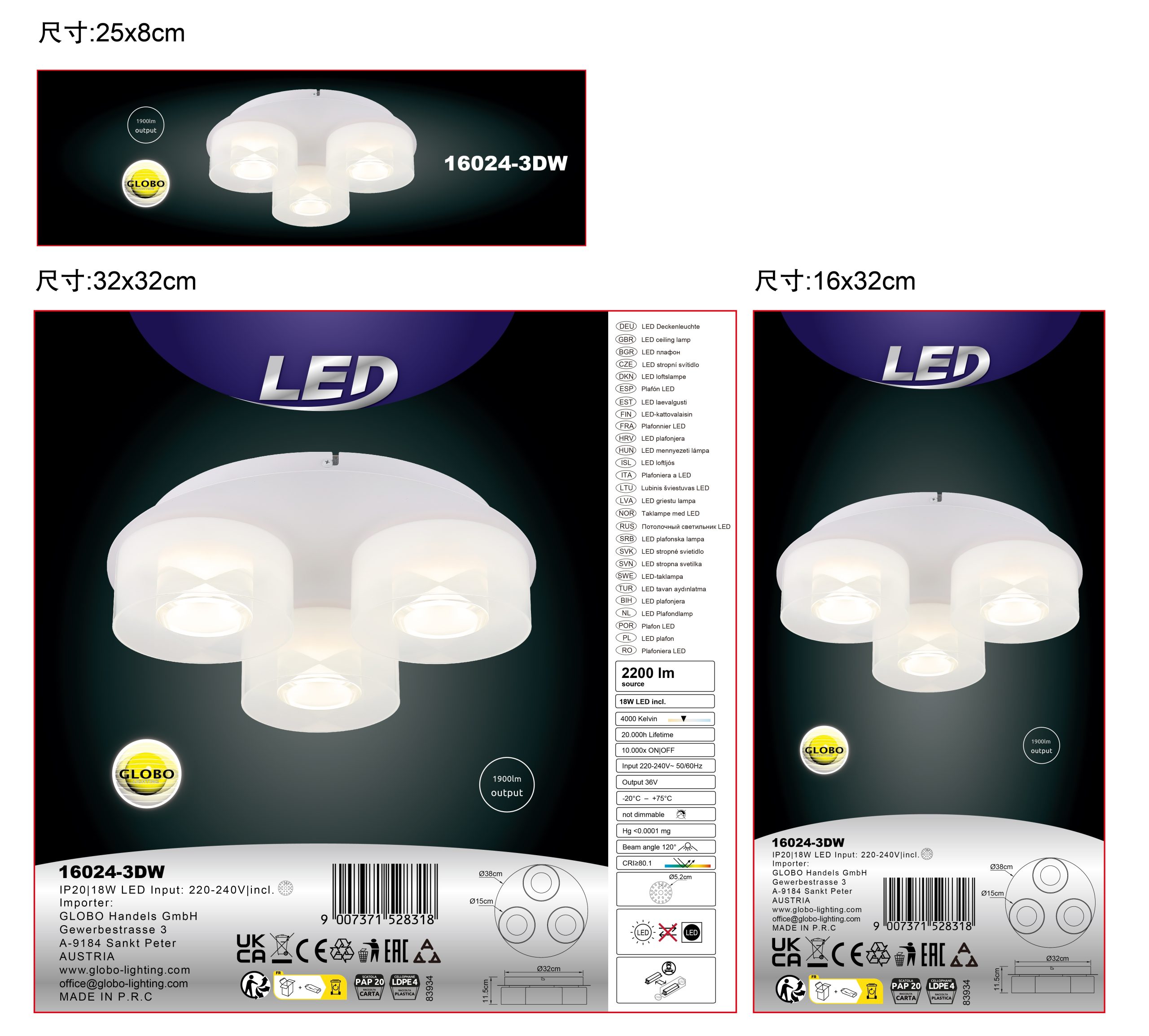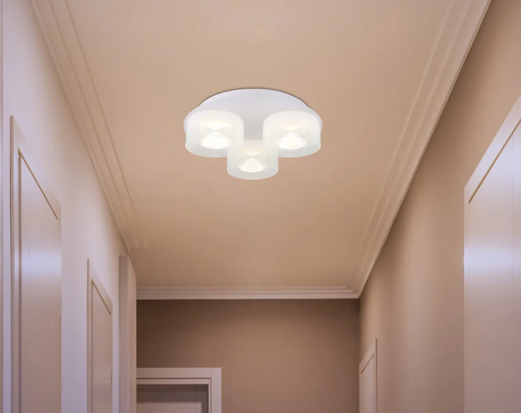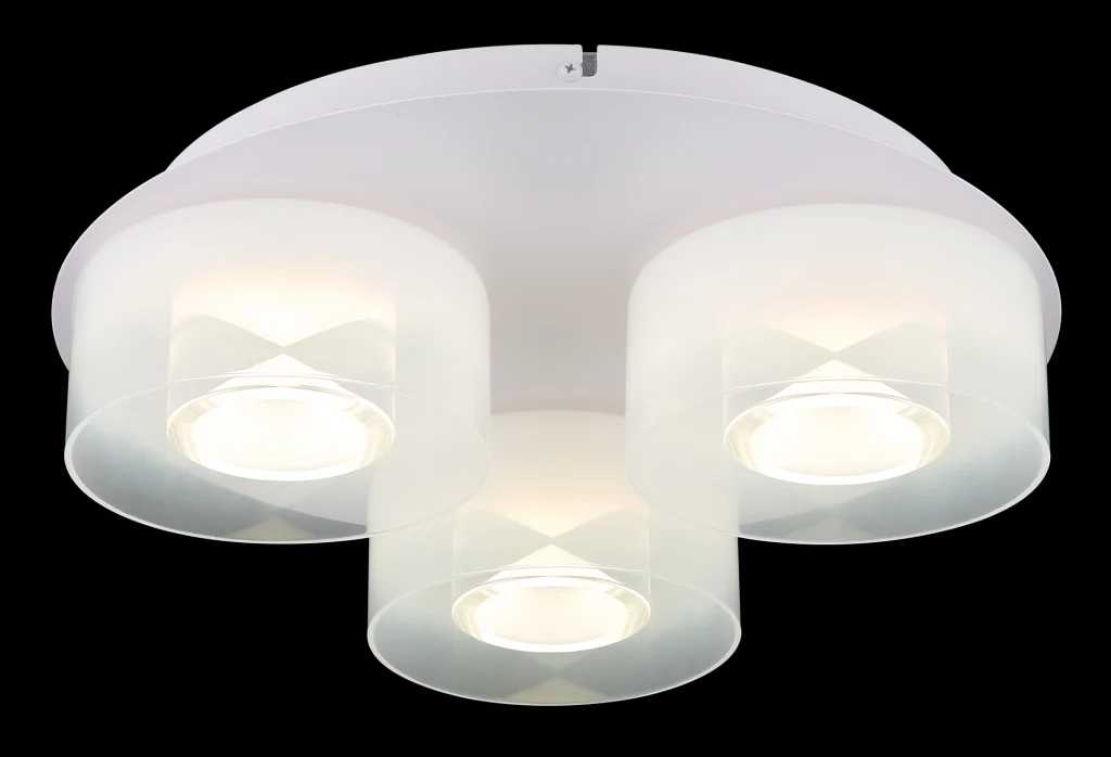 Plafonska lampa BELINDA kombinuje elegantan dizajn sa funkcionalnošću. Sa tri okrugla abažura koja emituju privlačnu svetlost, stvara harmoničnu atmosferu. Belo mat metalno kućište se savršeno usklađuje sa opalnim, providnim i gradijentnim staklenim abažurima. Sa prečnikom od 380 mm i svetlosnim snagama od 1900 lumena, idealna je za velike prostorije. Temperatura boje od 4000 K pruža prijatno, neutralno svetlo koje je idealno za radne i dnevne prostore. Ova lampa kombinuje stil i praktičnost, što je čini savršenim izborom za moderne enterijere.