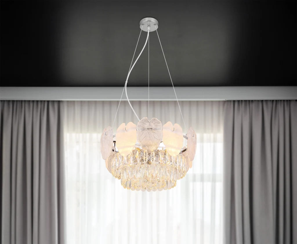 Naša LUSTER BENDžAMIN METAL HROM je prava atrakcija u svakoj prostoriji. Ova tradicionalna lampa okruglog oblika i kristalnog okačenja sija u pravom oreolu. Hromirano metalno kućište daje lampi moderan dodir, dok satenski završeni K5 kristali na abažuru nude raskošan izgled svetlosti. Opremljena sa 8XE14, ova svetiljka će stvoriti jedinstvenu atmosferu. Prozirna staklena površina i hromirana površina kućišta stvaraju elegantan i bezvremenski izgled. Prečnik od 500 mm čini ovu lampu idealnom za ukrašavanje većih prostora kao što su dnevne sobe, kancelarije ili poslovni prostori. Prava atrakcija za sve one koji traže eleganciju i tradiciju!