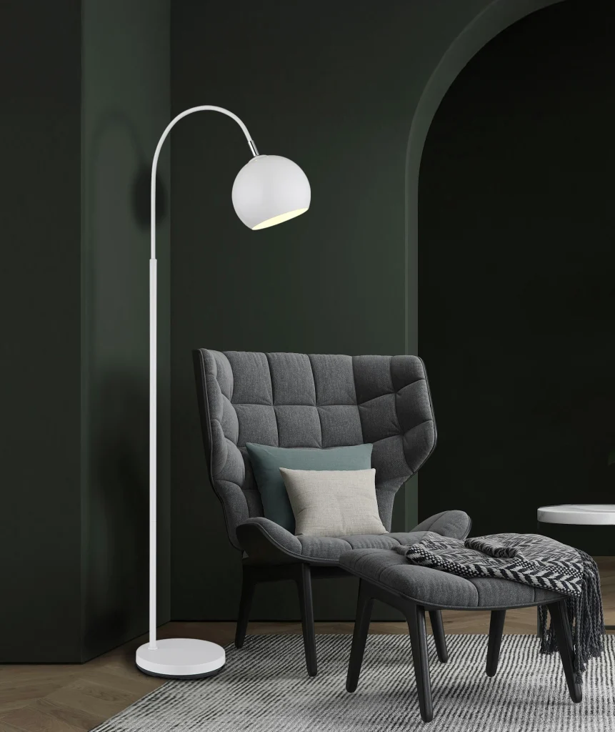 Podna lampa BENNO u beloj boji kombinuje moderan dizajn sa praktičnim funkcijama. Njena zakrivljena cev i kućište od belog mat metala pružaju savremeni izgled koji se uklapa u svaki enterijer. Abažur od belog, mat metala dopunjuje celokupnu sliku i obezbeđuje ravnomernu raspodelu svetlosti. Sa nožnim prekidačem u kablu, rukovanje je posebno praktično. Sa visinom od 460 mm i širinom od 250 mm, ova lampa je idealna za svaku prostoriju, bilo da je u dnevnoj sobi, spavaćoj sobi ili kancelariji. Grlo E27 vam omogućava da izaberete idealan izvor svetlosti kako biste stvorili atmosferu koju želite. Podna lampa BENNO je stilski dodatak svakoj prostoriji i pruža prijatan ambijent osvetljenja.