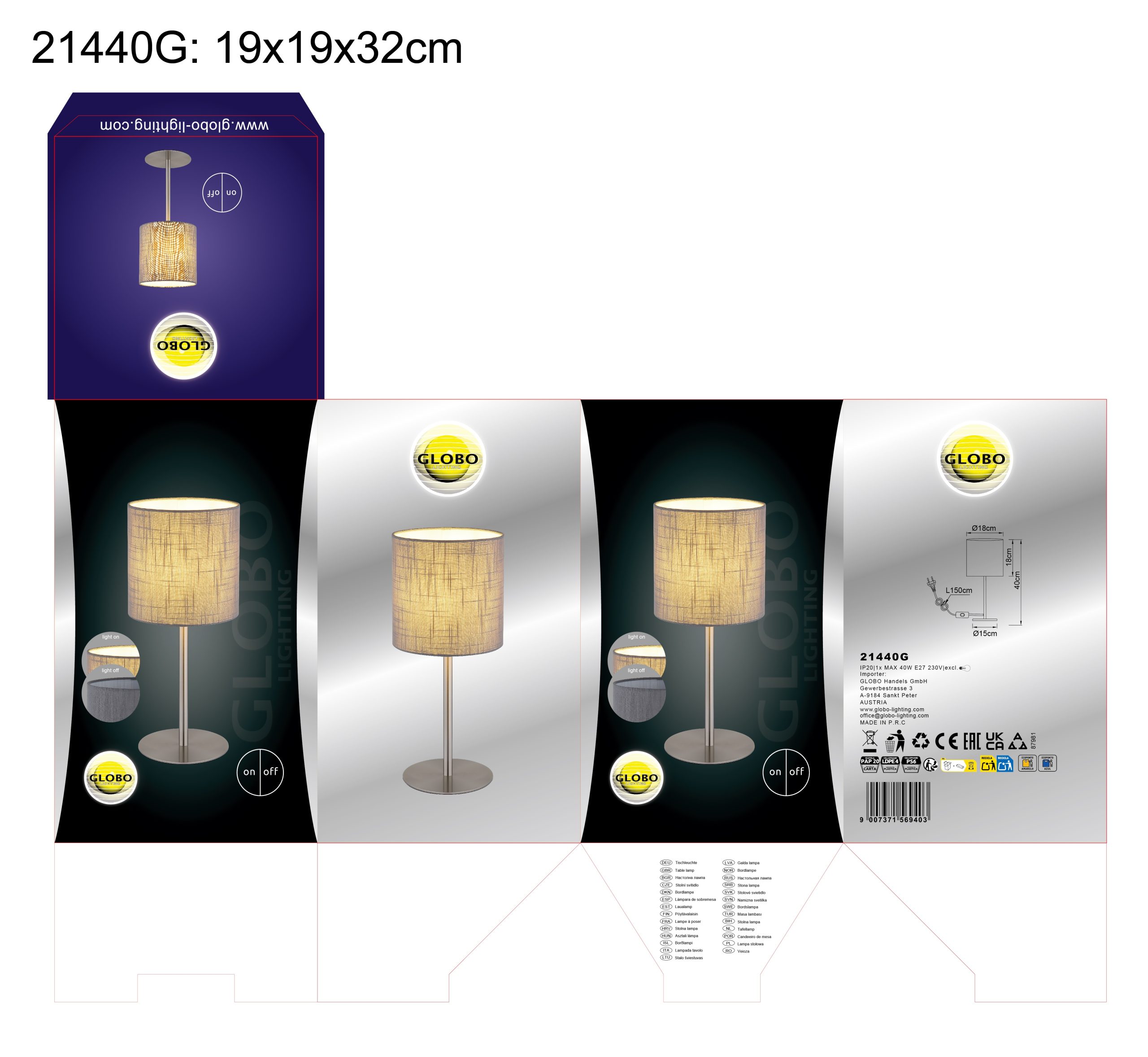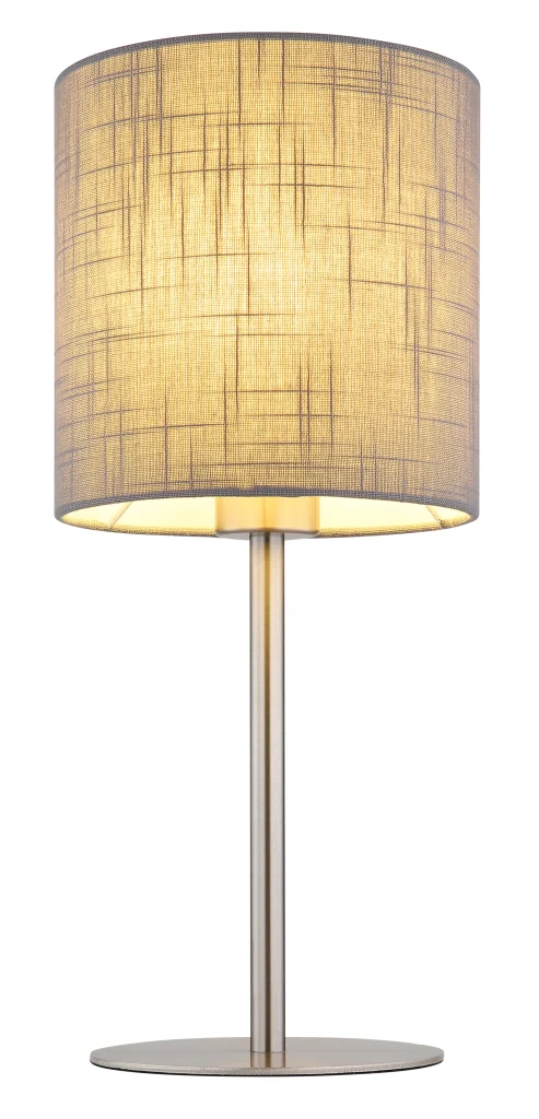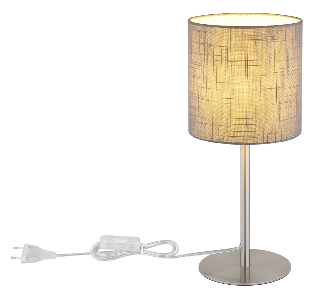Stona lampa BENSON impresionira bezvremenskim dizajnom i visokokvalitetnim materijalima – savršena je za dnevne sobe, spavaće sobe ili kancelarije. Okrugla, ravna osnova napravljena od mat niklovanog metala daje lampi moderan, elegantan dodir. Cilindrični abažur od tkanine u suptilnoj sivoj boji pruža prijatno difuzno svetlo i stvara ugodnu atmosferu. Zahvaljujući prekidaču na kablu, lampa se lako uključuje i isključuje. Sa prečnikom od 180 mm, BENSON se bez napora uklapa u različite stilove enterijera – od klasičnog do modernog. Lampa ima grlo E27 (sijalica nije uključena), što vam omogućava da izaberete izvor svetlosti prema vašim željama – toplo bela za udobnost ili neutralna bela za rad. BENSON kombinuje jednostavnu eleganciju sa praktičnom funkcionalnošću – stilski izvor svetlosti za svaku prostoriju.