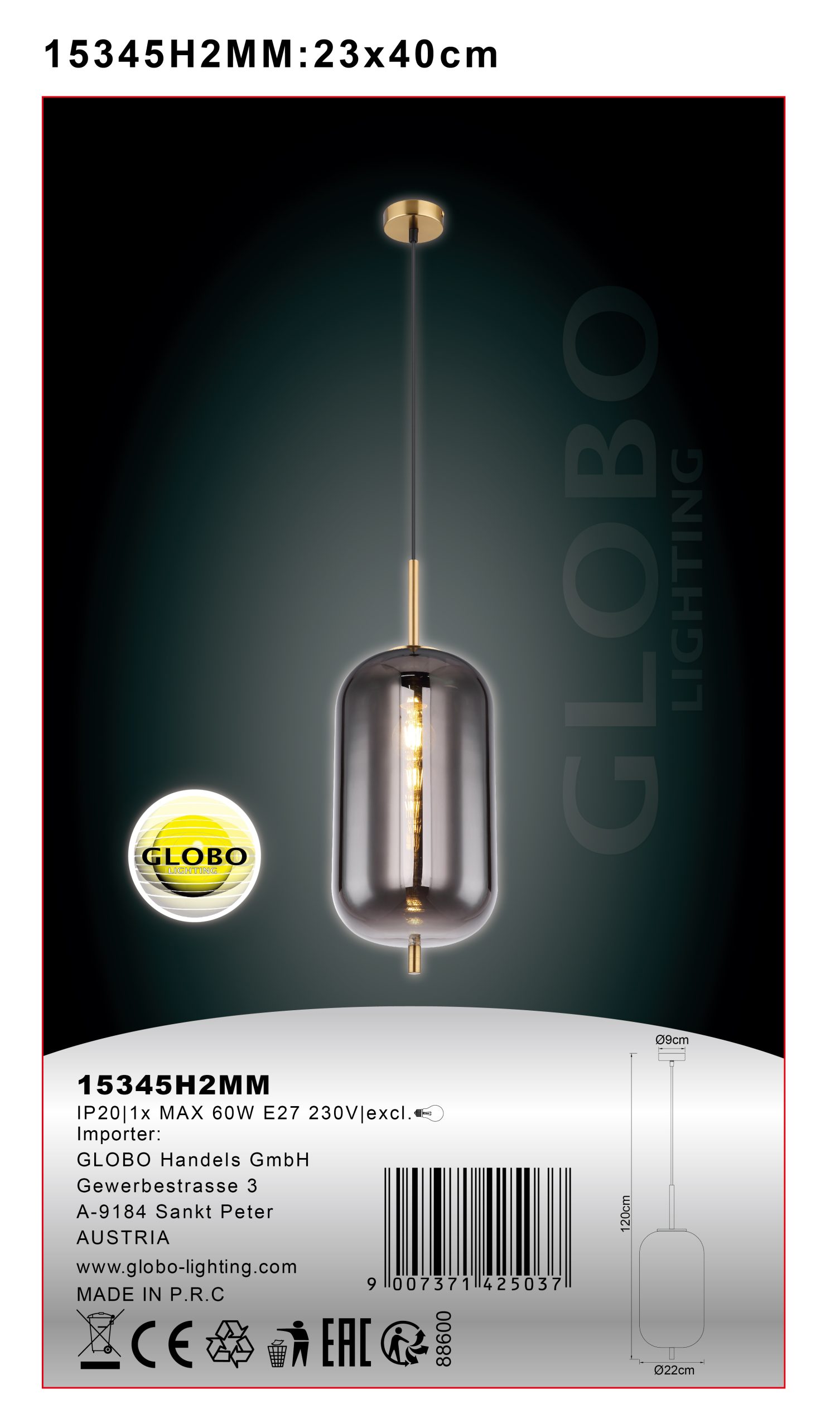 Ova okrugla viseća lampa (ø 22 cm) uverava svojim elegantnim dizajnom napravljenim od metala boje mesinga i dimljenog stakla. Sastoji se od okruglog, dimljenog staklenog abažura, koji je opremljen metalnim elementima boje mesinga i visi sa plafona na crnom kablu. Visina viseće lampe može se podesiti do 120 cm tokom instalacije. Pored toga, grlo E27 može biti opremljeno odgovarajućom sijalicom po vašem izboru unutar staklenog abažura, što vam omogućava da individualno određujete boju svetlosti i osvetljenost. Sa nekoliko modela iste serije, možete stvoriti stilski ambijent u svom enterijeru i upotpuniti celokupnu sliku.