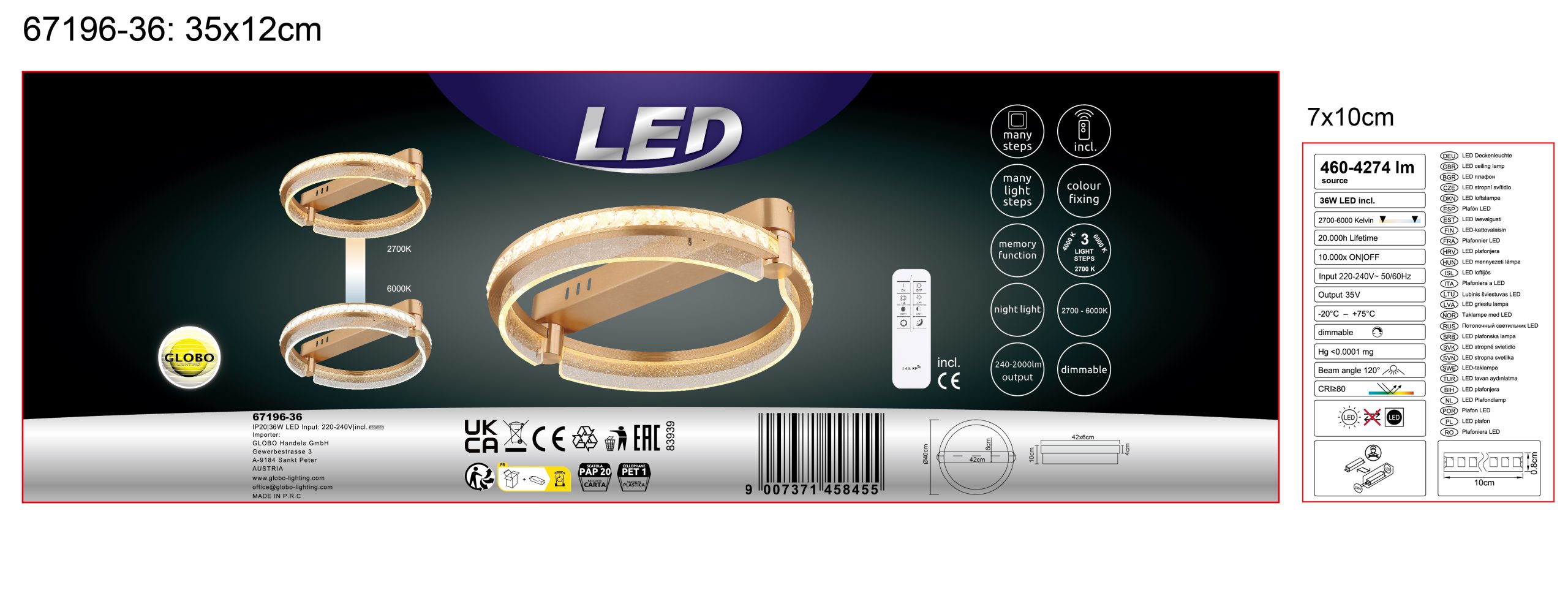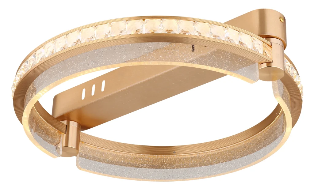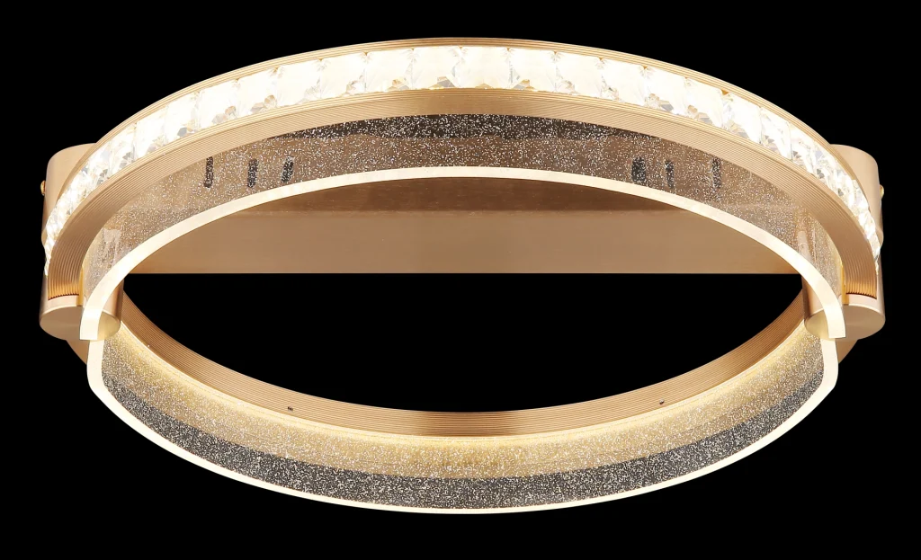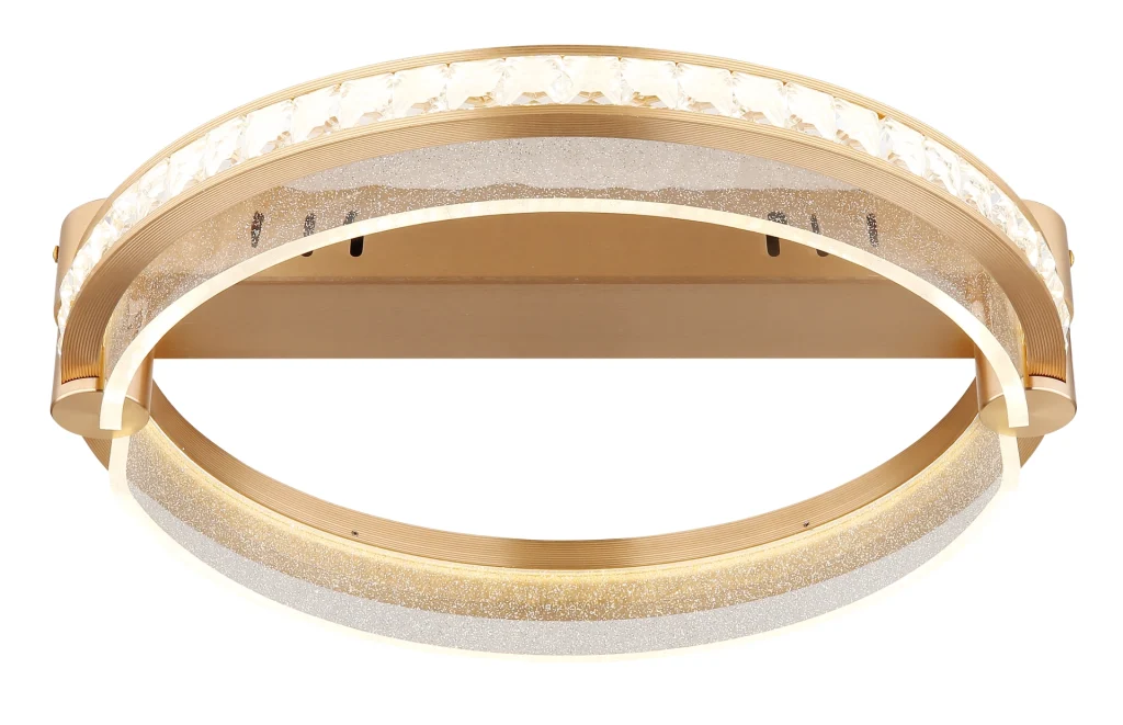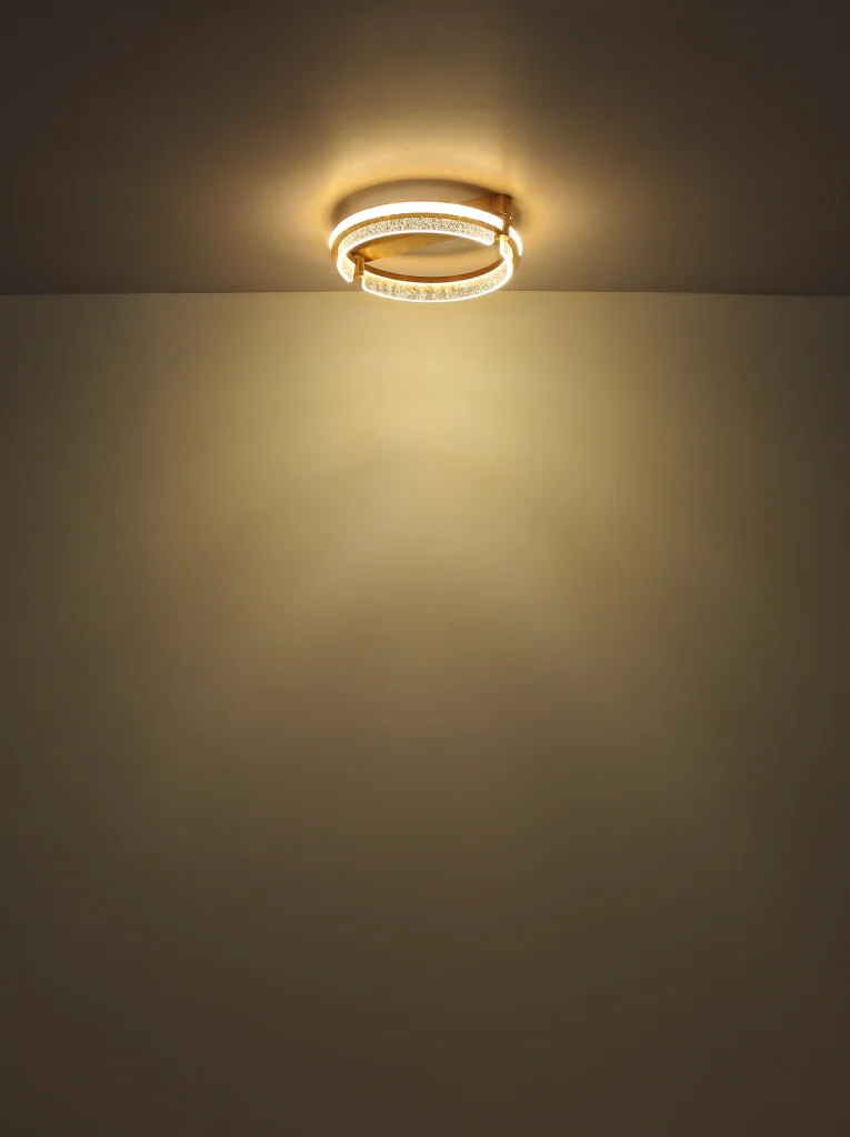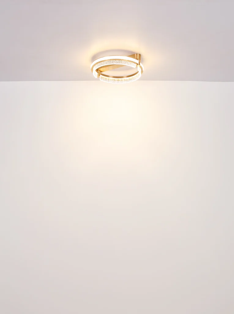 Okrugla plafonska lampa BLONDI u obliku prstena je apsolutni magični detalj u svakoj prostoriji. Svojim plemenitim dizajnom i visokokvalitetnim materijalima, dodaće dašak luksuza i elegancije vašem domu. Telo plafonske lampe je napravljeno od zlatnog aluminijuma, koji je brušen i samim tim ima suptilni sjaj. Abažur je napravljen od providnih K5 kristala i providnog akrila, koji pruža impresivno prelamanje svetlosti. Pomoću priloženog daljinskog upravljača možete praktično kontrolisati svetlo. Može se prigušiti, tako da možete pojedinačno podešavati osvetljenost. Pored toga, možete podesiti svoju omiljenu boju, a integrisana funkcija memorije čuva vaša podešavanja. Plafonska lampa BLONDI ima prečnik od 400 mm i svetlosni snaga od 2000 lumena. Sa CCT od 2700K do 6000K, pruža vam raznovrsno podesivo osvetljenje. Sa plafonskom lampom BLONDI, možete se osloniti na jedinstven dizajn i visokokvalitetnu izradu. Uronite svoj dom u prijatno, atmosfersko svetlo i uživajte u luksuznoj atmosferi koju ova svetiljka stvara.