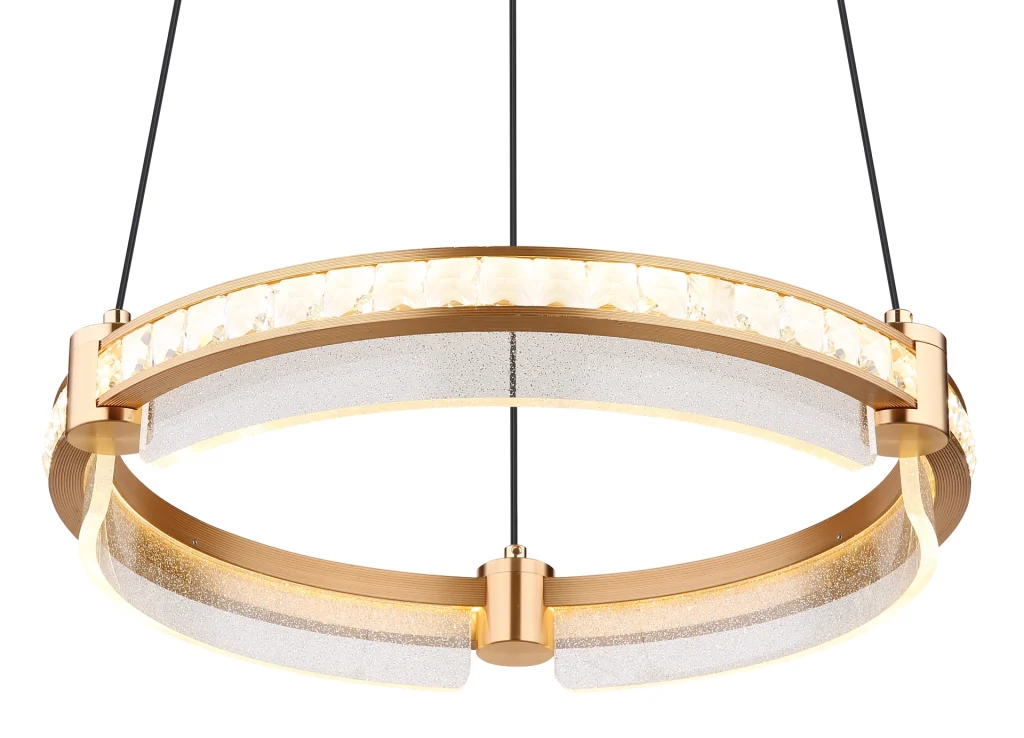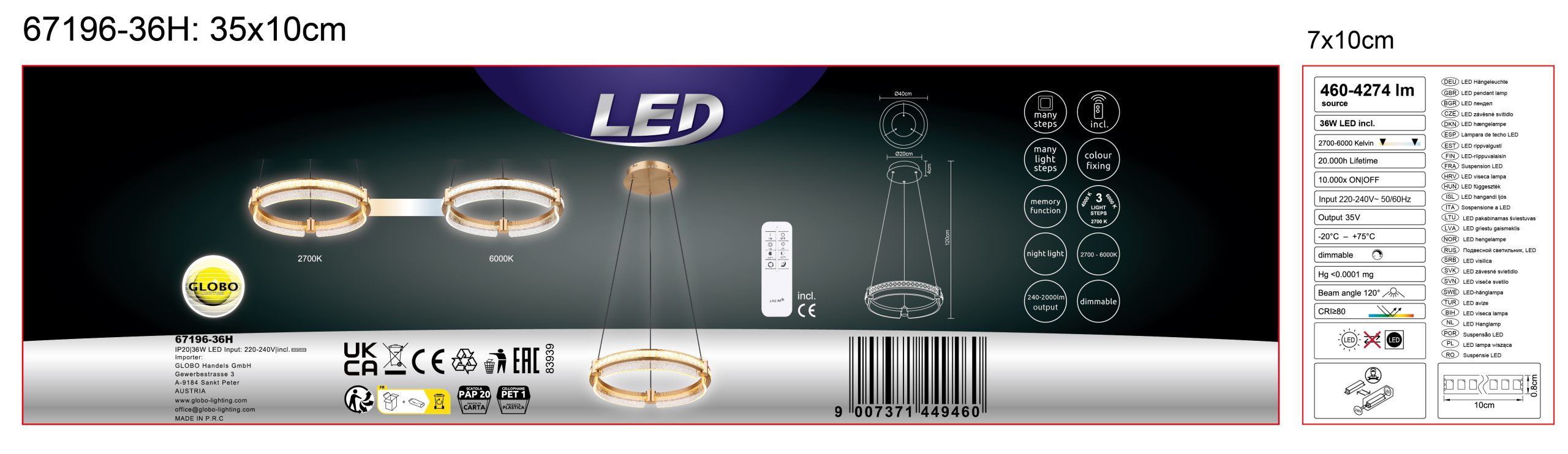 Okrugla viseća lampa BLONDI u obliku prstena je prava atrakcija i daje vašem domu luksuzan izgled. Sa svojim elegantnim dizajnom i visokokvalitetnim materijalima, biće vrhunac u svakoj prostoriji. Telo viseće lampe je napravljeno od aluminijuma boje zlata, koji je brušen kako bi se stvorio elegantan sjaj. Abažur je napravljen od providnih K5 kristala i providnog akrila, koji pruža fascinantno prelamanje svetlosti. Viseća lampa BLONDI dolazi sa praktičnim daljinskim upravljačem koji vam omogućava da lako kontrolišete osvetljenje. Može se prigušiti, tako da možete podesiti osvetljenost po svojoj želji. Pored toga, možete podesiti svoju omiljenu boju, a integrisana funkcija memorije čuva vaša podešavanja. Sa prečnikom od 400 mm, viseća lampa BLONDI proizvodi snaga svetla od 2000 lumena. Zahvaljujući CCT od 2700K do 6000K, imate mogućnost da individualno regulišete boju svetlosti. Sa visećom lampom BLONDI, ne samo da unosite luksuzni dizajn u svoj dom, već i stvarate prijatnu i atmosfersku atmosferu. Uronite svoje sobe u zadivljujuću igru svetlosti i uživajte u luksuznom ambijentu koji ova svetiljka stvara.