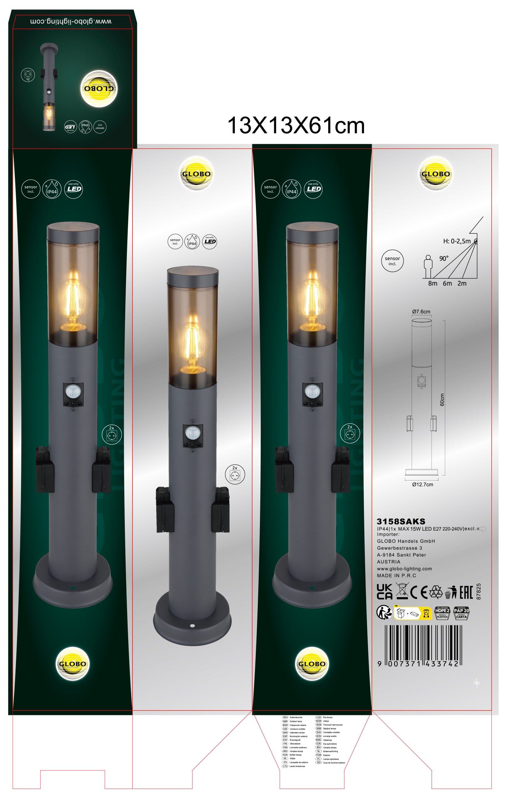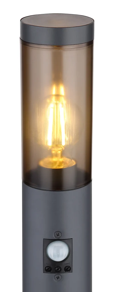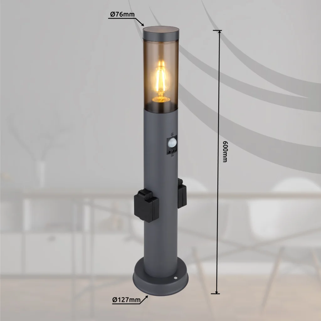 Ova elegantna osnovna lampa iz Boston serije karakteriše se stilskim dizajnom i odličnom izradom. Ova lepo oblikovana spoljna lampa je idealna za spoljašnju upotrebu zbog svog stepena zaštite IP44. Ovaj model je napravljen od nerđajućeg čelika i plastike u antracit boji i ima ukupnu veličinu od 60 cm. Lampa je opremljena grlom E27 i omogućava vam da koristite sijalicu (maks. 15W) po vašem izboru. Zbog uštede energije i dugog veka trajanja, preporučujemo LED lampe. Dodatna prednost su dva grla i integrisani detektor pokreta (90°) sa dometom od 2 do 8 metara. Sa drugim osnovnim lampama i zidnim lampama iste serije proizvoda možete upotpuniti sliku.