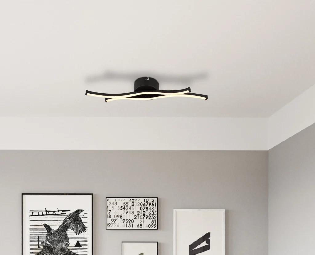 Otkrijte izduženu plafonsku lampu od metala, mat crne boje, sa dve zakrivljene šipke – moderan i stilski dodatak vašem domu! Ova plafonska lampa impresionira svojim elegantnim kućištem napravljenim od mat crnog metala i abažurima od aluminijuma u mat crnoj boji i opal plastike. Sa temperaturom boje od 3000 K, pruža toplo belo svetlo koje stvara prijatnu i gostoljubivu atmosferu. Izduženi oblik i zakrivljene šipke čine ovu plafonsku lampu pravim atrakcijom u svakoj prostoriji, idealnom za dnevne sobe, trpezarije ili hodnike. Opremljena energetski efikasnom LED diodom, ne samo da nudi optimalnu distribuciju svetlosti, već i dug vek trajanja i nisku potrošnju energije. Postavite moderan akcenat u svom domu pomoću METALNE PLAFONSKE LAMPE i uživajte u savršenoj kombinaciji dizajna i funkcionalnosti.