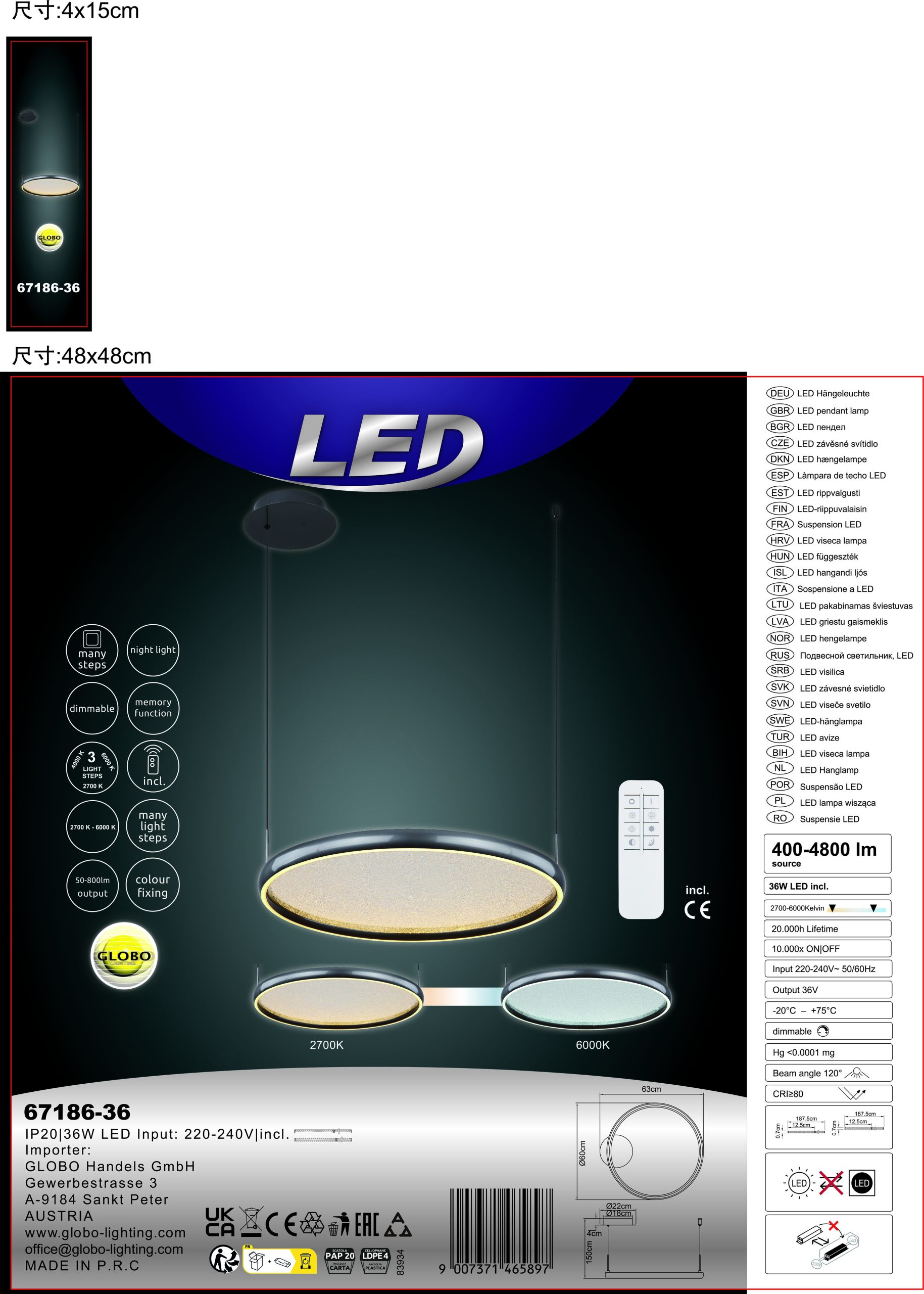 Viseća lampa BRIGGS je elegantan dodatak vašem domu. Sa svojim okruglim dizajnom i jednim prstenom, zrači bezvremenskom lepotom. Mat crno metalno kućište daje lampi moderan dodir, dok crni aluminijumski abažur sa satenskom završnom obradom obezbeđuje ravnomernu raspodelu svetlosti. VISEĆA LAMPA BRIGGS METAL BLACK MATT opremljena je snažnom LED diodom i nudi izlaz od 4100 lumena. Ima razne funkcije, uključujući mogućnost prigušivanja, fiksiranje boje i praktičnu funkciju memorije. Sa prečnikom od 600 mm i mogućnošću podešavanja temperature boje od 2700 K do 6000 K, ova viseća lampa nudi prilagodljivo osvetljenje za svaku prostoriju. Pomoću priloženog daljinskog upravljača, osvetljenje se može praktično kontrolisati.