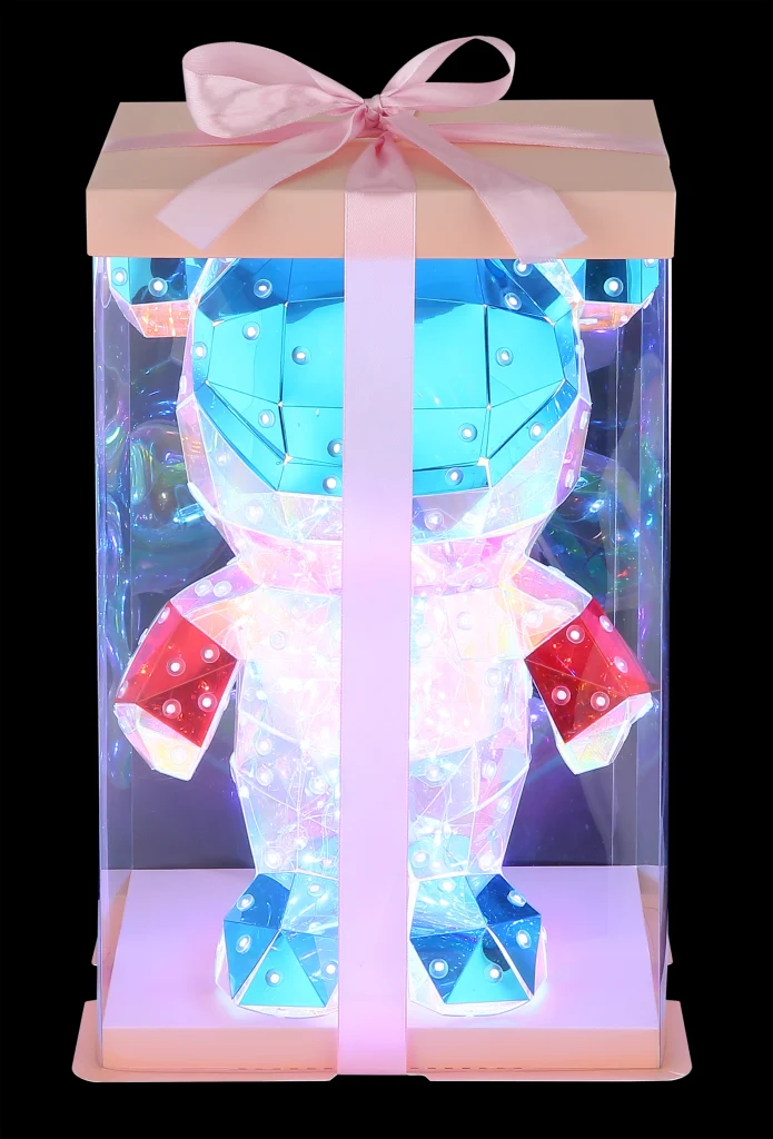 BRONDAR stona lampa očarava svojim razigranim dizajnom i hladnom kristalnom optikom: Medved svemirac kao izvor svetlosti unosi galaktički šarm u svaku dečiju sobu ili kreativni životni ambijent. Telo napravljeno od providne, dimljene plastike sa kristalnim efektom daje figuri sofisticiranu dubinu i posebne refleksije svetlosti. Crveni i plavi abažur, takođe sa kristalnim efektom, pružaju šarene akcente i čine lampu zaista privlačnom za oko. Opremljena integrisanom LED diodom sa temperaturom boje od 8000 K, BRONDAR emituje hladno, moderno svetlo. Praktični prekidač na kablu omogućava lako rukovanje, dok priloženi USB kabl nudi fleksibilne mogućnosti primene (adapter nije uključen). Bilo da je na noćnom stočiću, na polici ili kao dekorativno akcentno osvetljenje – BRONDAR nije samo funkcionalan već je i pravi ukras za svemirske putnike svih uzrasta.