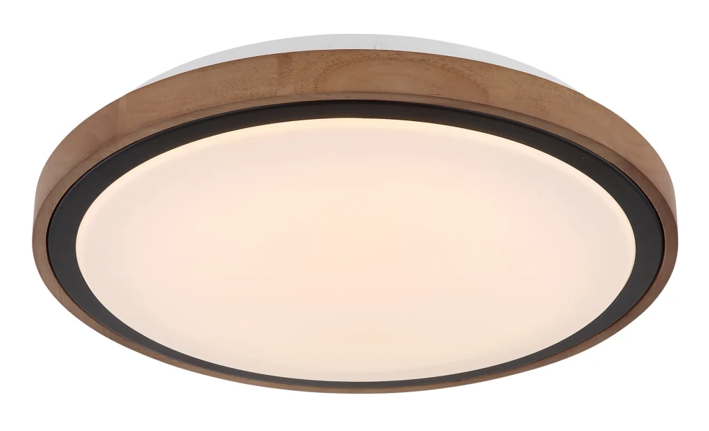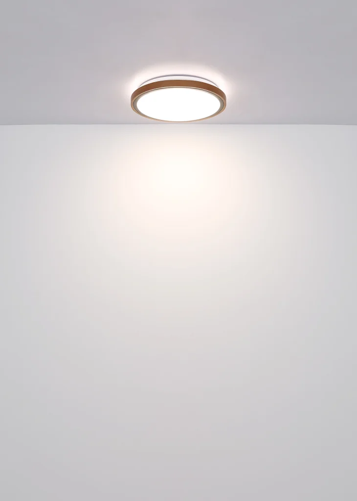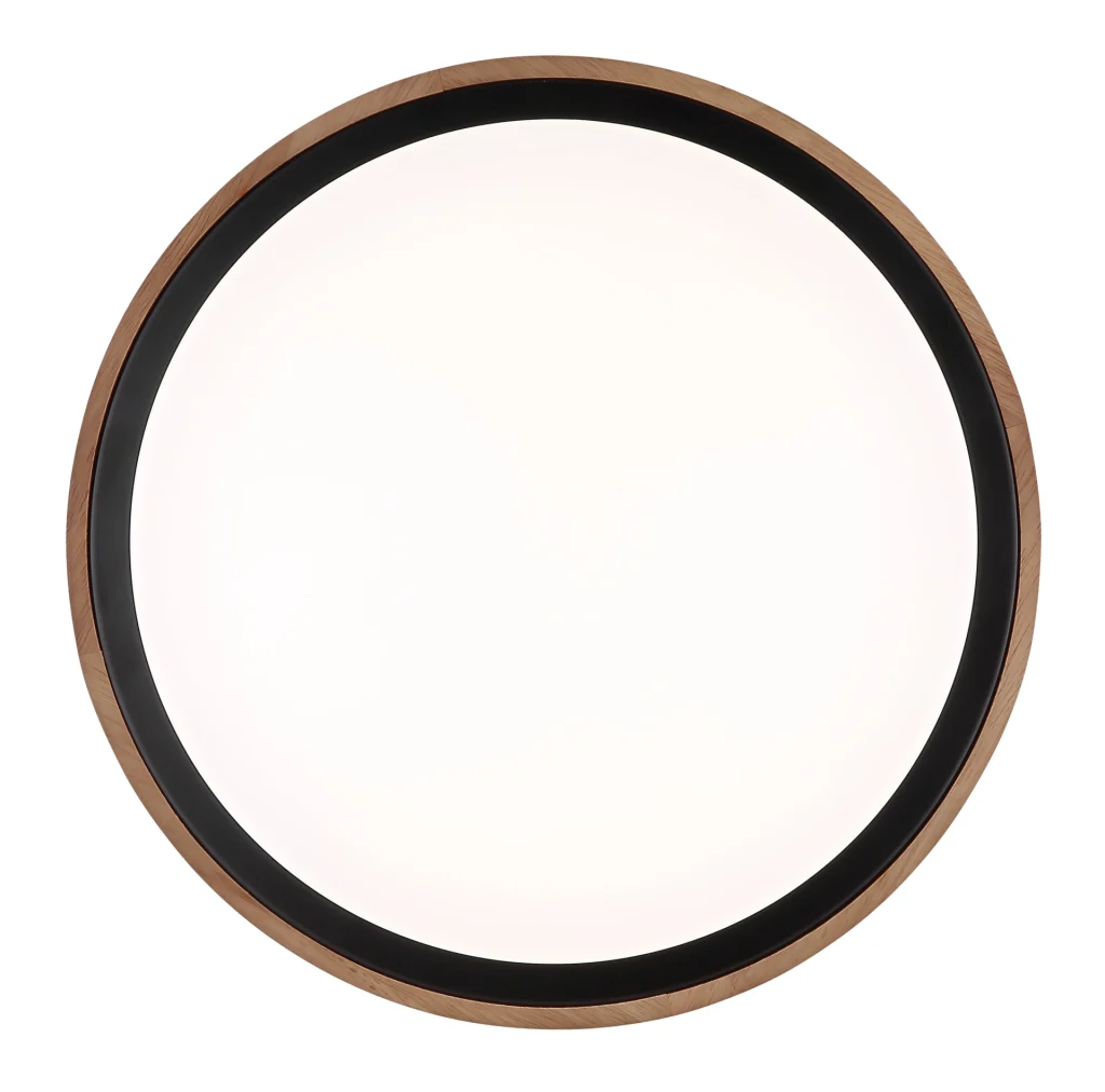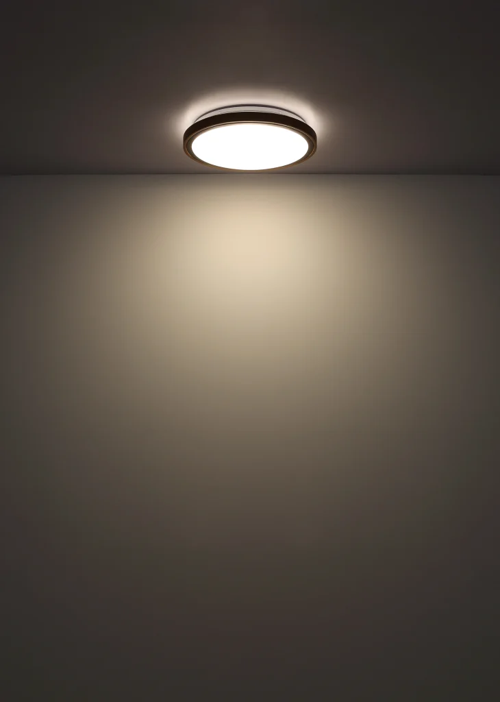 Plafonska lampa BRUNO kombinuje moderan dizajn sa prirodnom elegancijom. Njen okrugli abažur prečnika 380 mm okružen je drvenim okvirom koji dodaje topli akcenat. Telo napravljeno od mat crnog metala i smeđeg drveta daje lampi privlačnu estetiku. Abažur je napravljen od opal akrilnog stakla, uokviren mat crnim aluminijumskim prstenom. Pomoću prekidača na slavinu i kliznog prekidača sa funkcijom memorije, možete podesiti osvetljenost i boju svetlosti po potrebi. Plafonska lampa BRUNO nudi izlaz od 671 lumena i omogućava bezstepeno podešavanje temperature svetlosti od 3000 K do 6000 K. Ovo vam omogućava da prilagodite atmosferu osvetljenja u vašoj sobi. Ova plafonska lampa je savršen izbor za dnevne sobe, spavaće sobe ili hodnike, dodajući udoban i moderan dodir svakoj prostoriji.