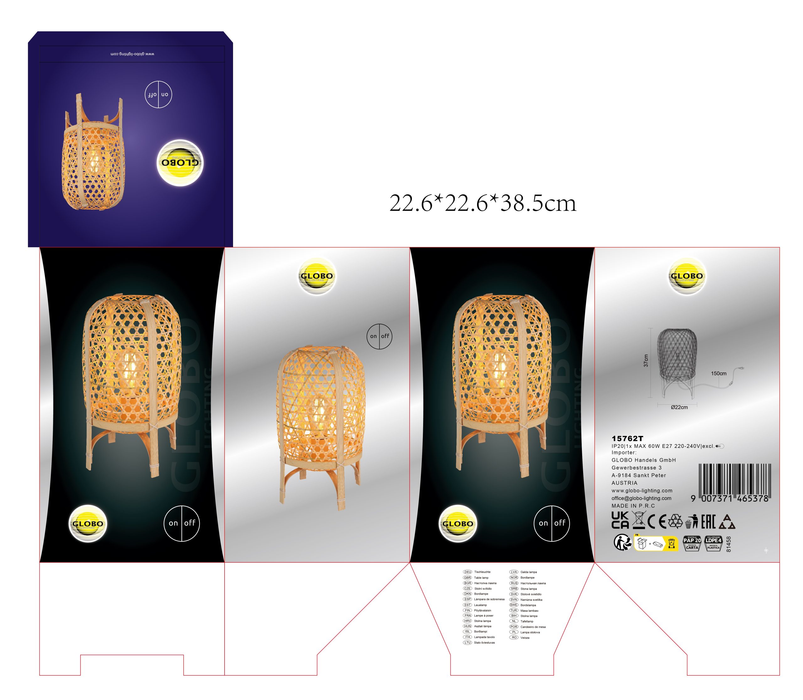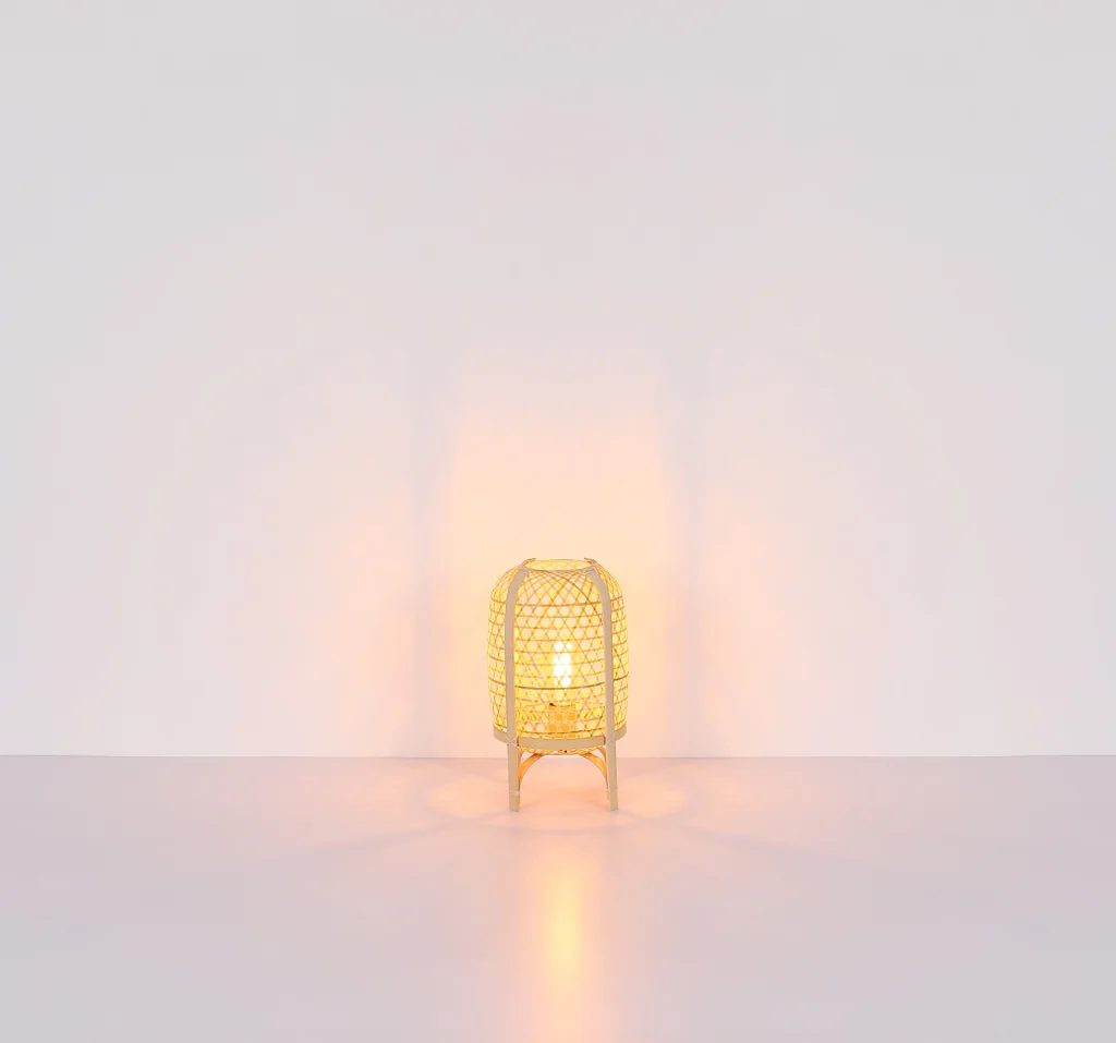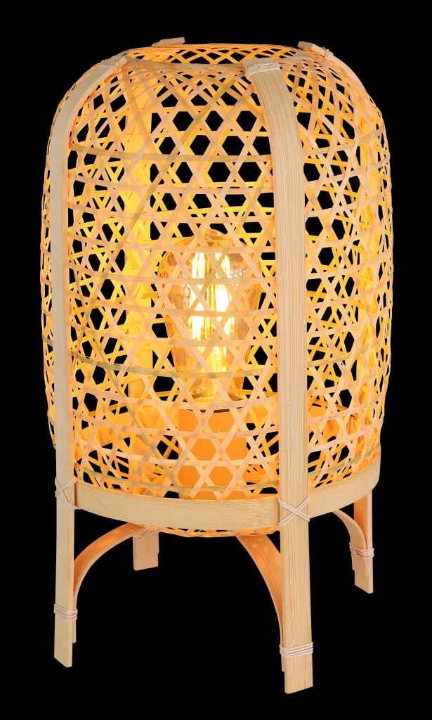 CAIRO kombinuje prirodne materijale i moderan dizajn u okrugloj stonoj lampi sa lukovičastim abažurom napravljenim od bambusa. Telo lampe je napravljeno od metala prirodne boje, dok je abažur u toploj nijansi bambusa. Sa prečnikom od 220 mm, ova stona lampa nudi prijatno osvetljenje za svaku prostoriju. Opremljena grlom E27, omogućava upotrebu različitih izvora svetlosti. Praktični prekidač na kablu olakšava paljenje i gašenje lampe. Snaga lumena stone lampe obezbeđuje dovoljnu osvetljenost u prostoriji. CAIRO nije samo funkcionalna, već je i dekorativni element za udobno i stilsko osvetljenje u vašem domu.