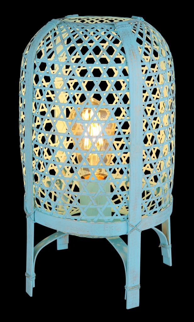 STONA LAMPA OD BELOG METALA je elegantna stona lampa okruglog dizajna sa lukovičastim abažurom napravljenim od plavo pranog bambusa. Telo lampe je napravljeno od antičko plavog metala i daje lampi šarmantan vintage izgled. Abažur napravljen od plavog bambusa sa antičkim izgledom savršeno dopunjuje dizajn. Sa prečnikom od 220 mm, ova stona lampa pruža prijatno osvetljenje u vašem domu. Svetiljka je opremljena grlom E27 i može biti opremljena različitim izvorima svetlosti. Praktični prekidač na kablu olakšava paljenje i gašenje svetla. Snaga lumena stone lampe pruža atmosfersko osvetljenje i vešto postavlja scenografiju za vaše sobe. STONA LAMPA OD BELOG METALA je savršen izbor za one koji traže stilsko i jedinstveno rešenje za osvetljenje.
