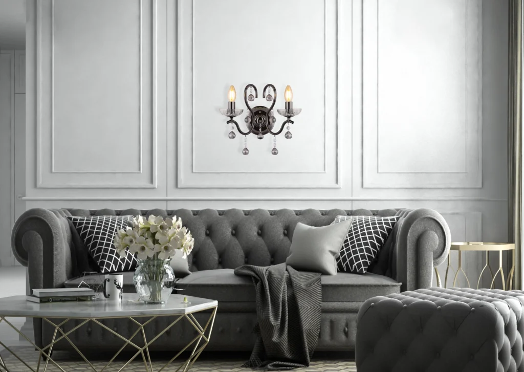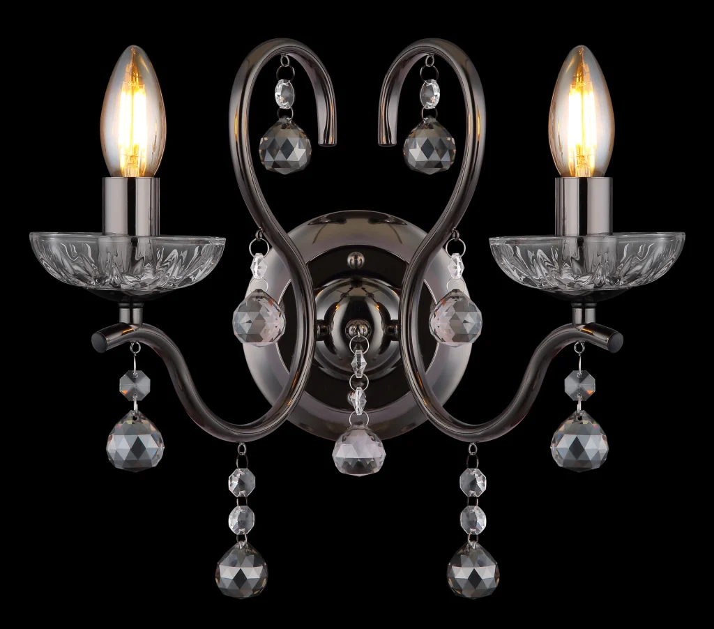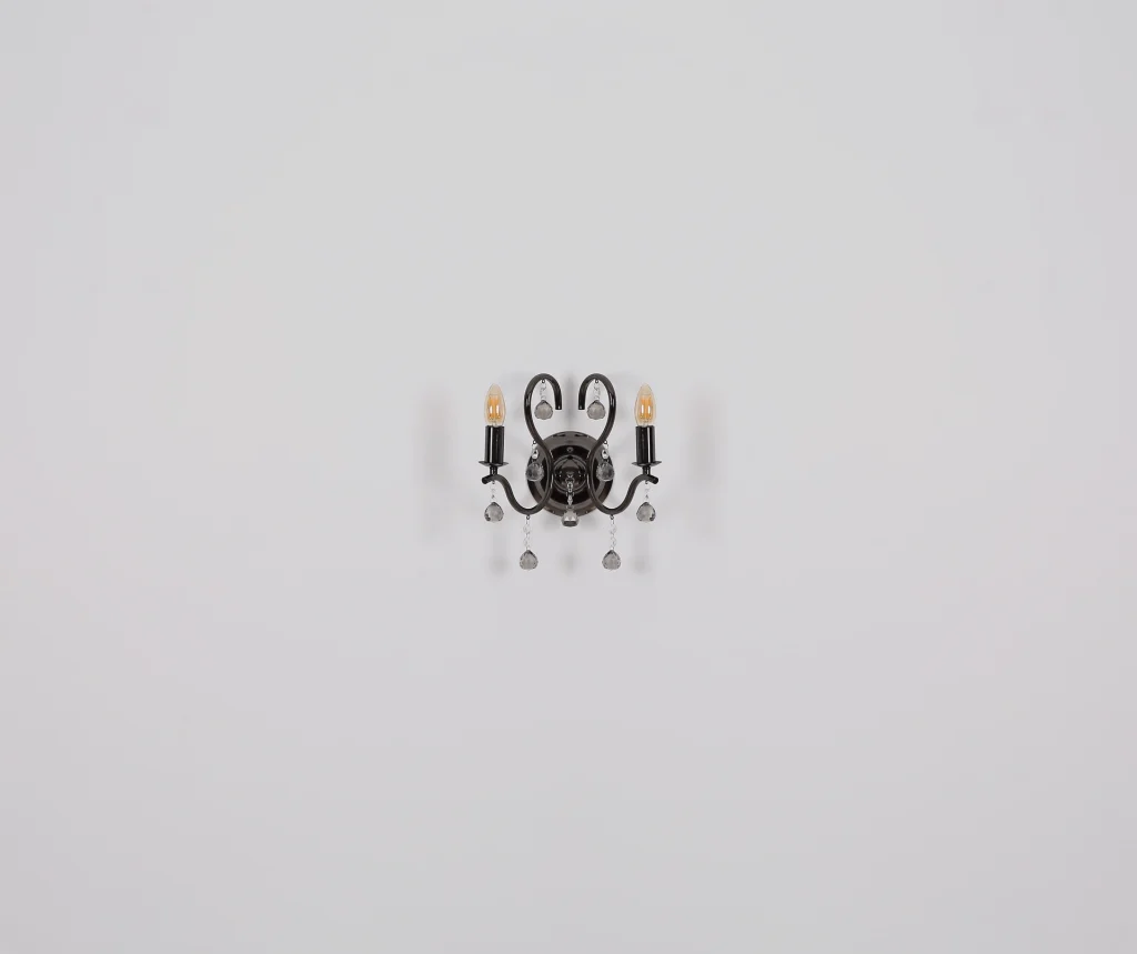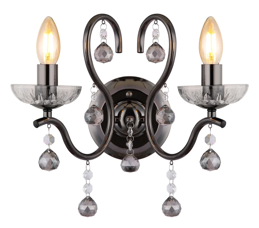 ZIDNA LAMPA CAMILA METAL CRNO-CHROM je jedinstvena zidna lampa koja se ističe svojim tradicionalnim svetlima i dva zakrivljena kraka. WL nagore joj daje klasičan dodir i savršeno se uklapa u svako moderno ili tradicionalno okruženje. Telo je napravljeno od metala u crnoj i hrom boji, što stvara plemenit i bezvremenski dizajn. Abažur je napravljen od providnih i dimljenih staklenih kristala koji stvaraju elegantan i veličanstven izgled. Ova kombinacija materijala i oblika stvara jedinstvenu atmosferu u svakoj prostoriji, bilo da je u pitanju kancelarija, dnevna soba ili trpezarija. ZIDNA LAMPA CAMILA METAL CRNO-CHROM je savršen dodatak za svaku dekoraciju koja kombinuje tradicionalni šarm sa modernim elementima.
