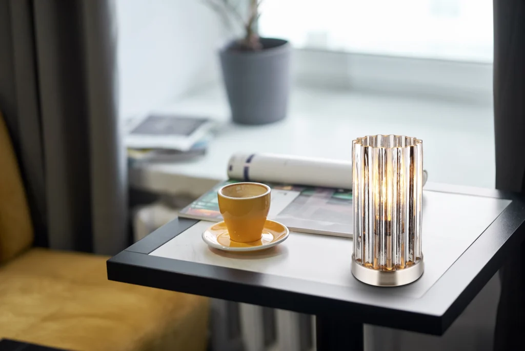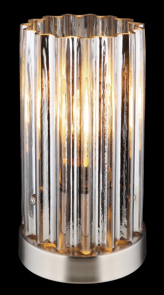 Stona lampa CAYDEN unosi modernu eleganciju u vaš dom. Okrugli stakleni cilindar sa žlebljenom strukturom i mat crno niklovano kućište stvaraju stilsko rešenje za osvetljenje stola ili noćnih kreveta. Prozirna satenska sočiva obezbeđuju prijatnu raspodelu svetlosti, dok prekidač na kablu omogućava lako rukovanje. Grlo E27 omogućava fleksibilan izbor izvora svetlosti.