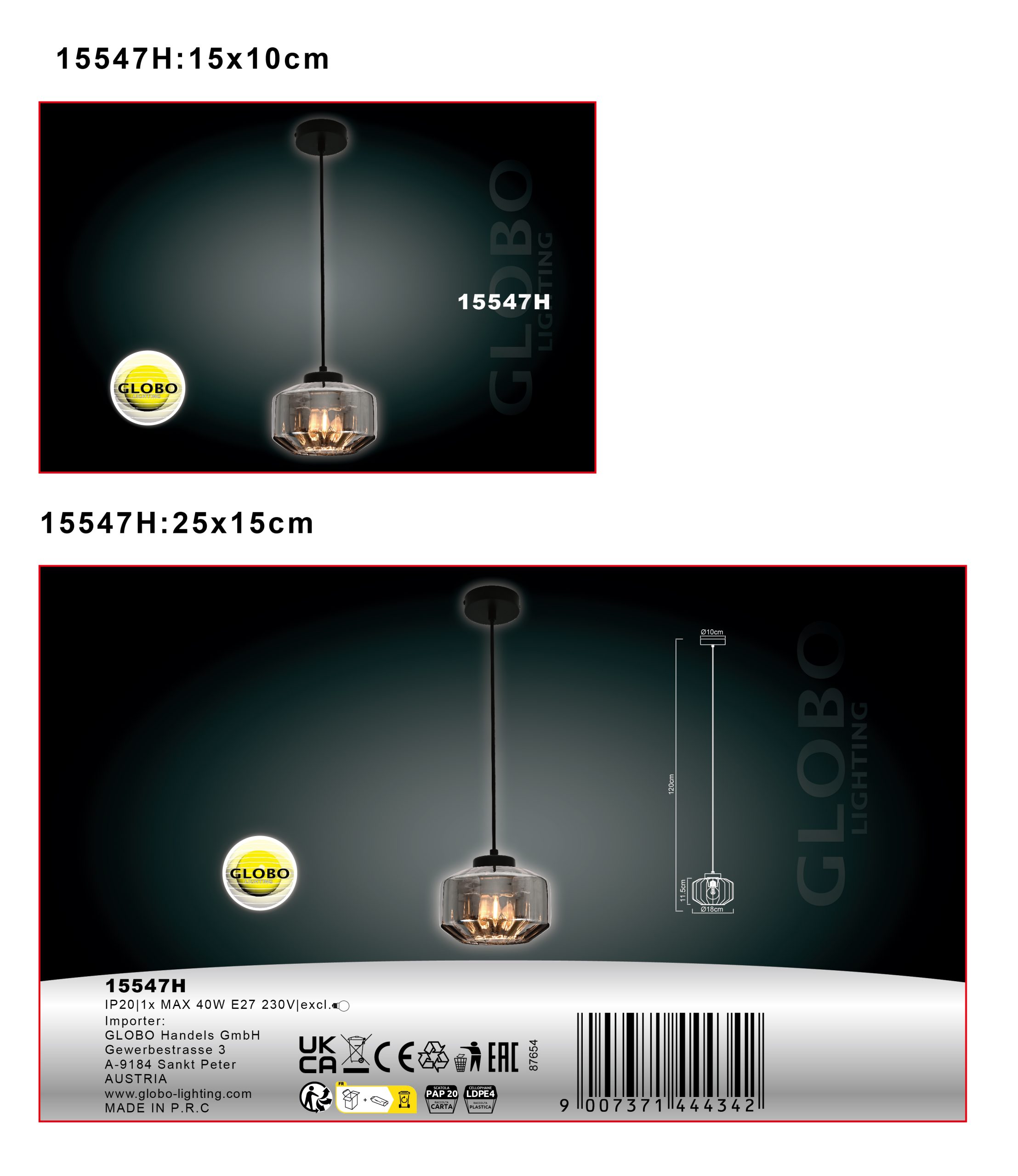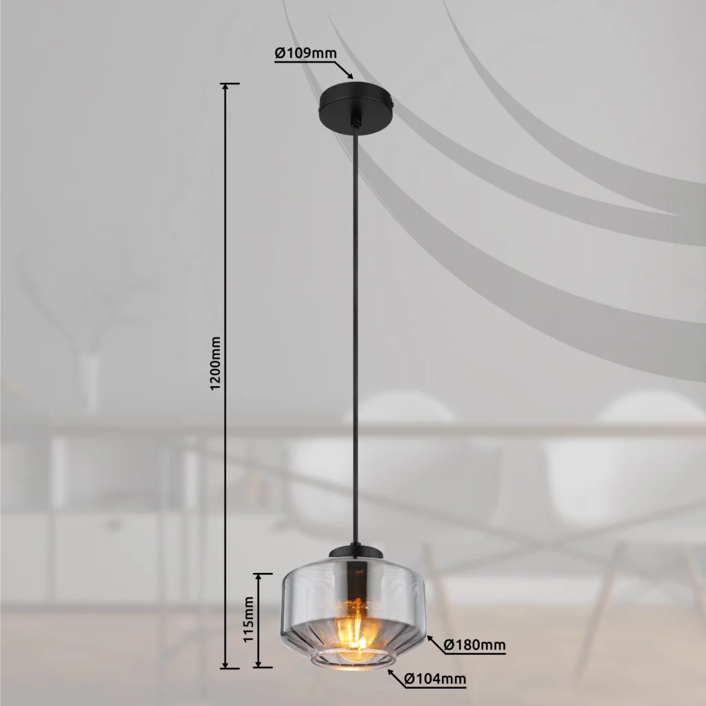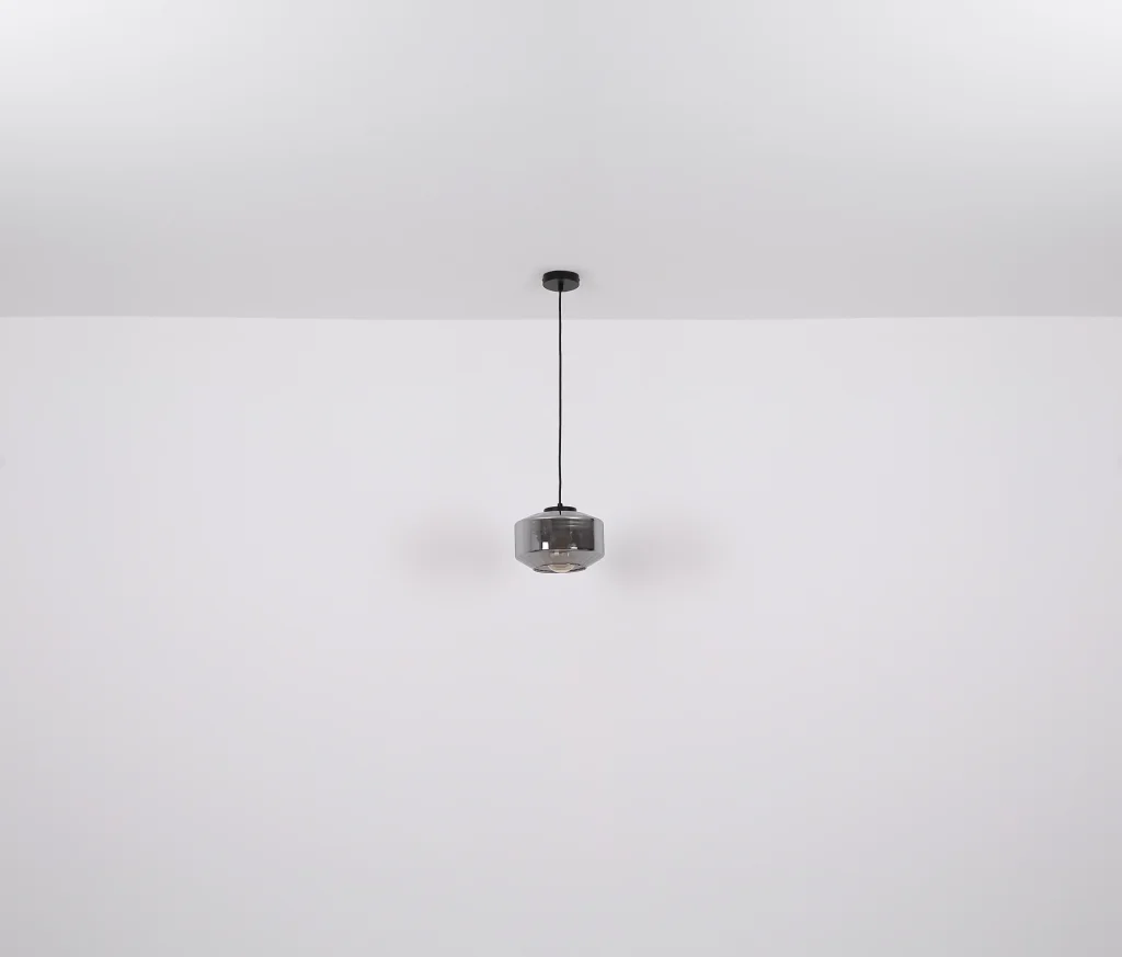 Ova jednostavna viseća lampa inspiriše svojim prelepim dizajnom. Kabl dužine 1,2 m viri iz okruglog crnog plafonskog nosača i završava se na grlu E27 sa elegantnim abažurom od dimljenog stakla (Ø 18 cm). Grlo E27 vam omogućava da sami odredite boju svetlosti i osvetljenost do maksimalne snage od 40 vati. Zbog dugotrajnosti i uštede energije, preporučujemo LED sijalice.