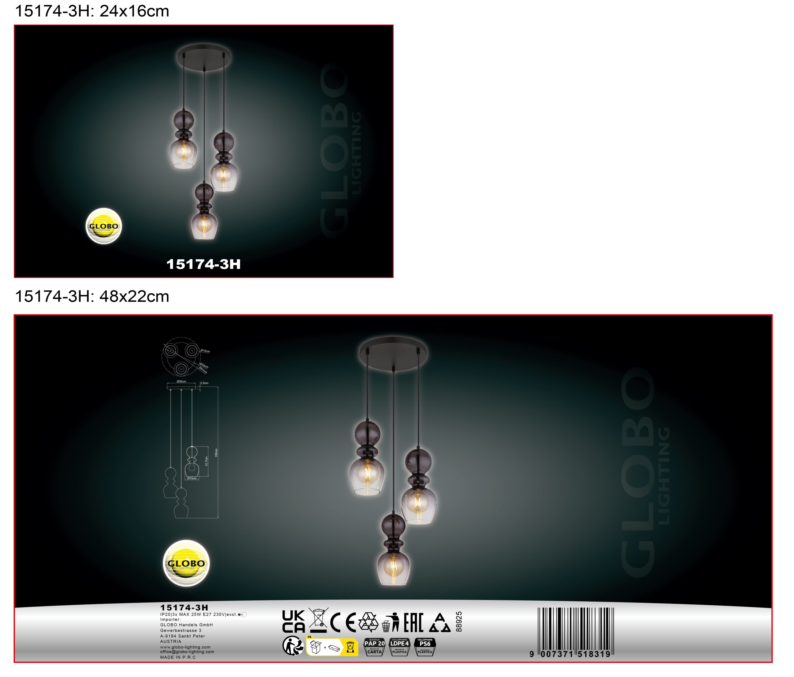 Viseća lampa CLARITY unosi elegantan dizajn i modernu eleganciju u vaše sobe. Sa svojim okruglim kućištem od mat crnog metala i tri lukovičasta stakla od dimljenog, providnog stakla, ova viseća lampa postavlja stilske akcente. Prečnik od Ø:410 mm obezbeđuje velikodušnu raspodelu svetlosti, dok grla E27 nude fleksibilnost u izboru sijalica. Fascinantan dizajn stakla stvara posebno svetlosno raspoloženje i transformiše svako okruženje u elegantan ambijent. Idealna za trpezariju, dnevnu sobu ili iznad trpezarijskog stola, CLARITY se lako uklapa u različite stilove enterijera. Kombinacija crnog metala i dimljenog stakla stvara moderan, ali bezvremenski izgled koji dodaje luksuzni šarm vašem prostoru. Ova viseća lampa nije samo izvor svetlosti, već i upečatljiv dizajnerski element koji će poboljšati vaše životne prostore.