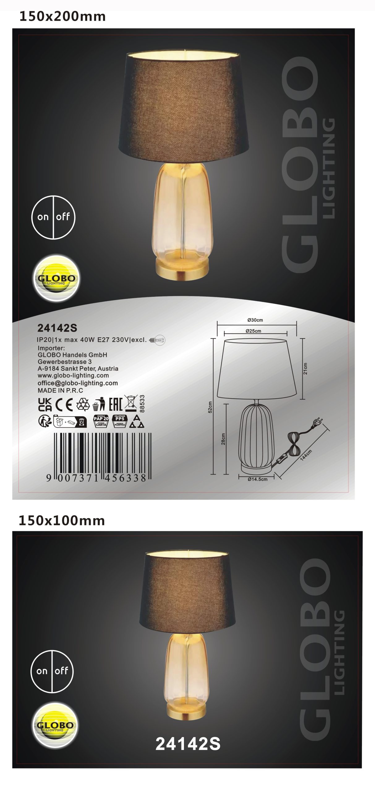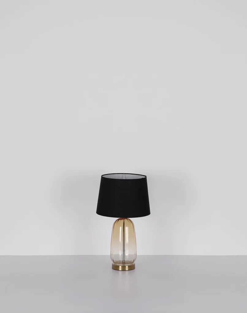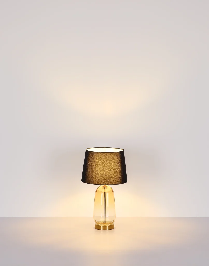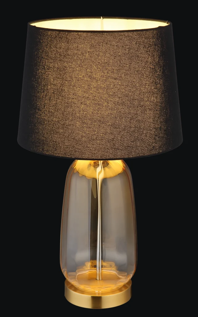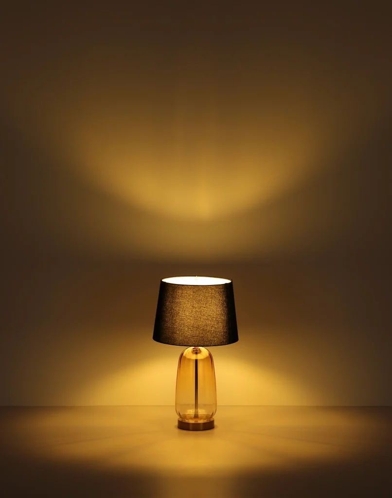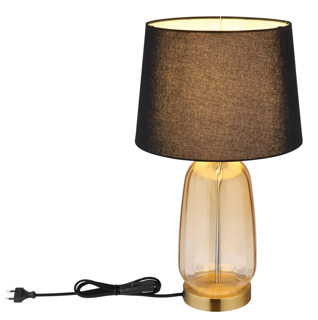 Stilska okrugla stona lampa sa staklenom osnovom u obliku lukovice i metalnim kućištem boje mesinga nudi elegantno rešenje za osvetljenje svake prostorije. Prozirna staklena osnova boje ćilibara daje lampi plemenit dodir i obezbeđuje prijatnu igru svetlosti. Abažur od crnog tekstila unosi moderan kontrast i ugodnu atmosferu u prostoriju. Sa prečnikom od 300 mm i snagom od 40 W, stona lampa nudi dovoljnu osvetljenost za širok spektar primene. Grlo E27 omogućava individualni izbor izvora svetlosti i dizajn svetla prema ličnim željama. Praktični prekidač na kablu olakšava rukovanje svetiljkom. Ova okrugla stona lampa je pravi ukras za oči i savršena je kao dekorativni element u dnevnim sobama, spavaćim sobama ili hodnicima. Postavite stilske akcente ovom stonom lampom i stvorite privlačnu atmosferu u svom domu.