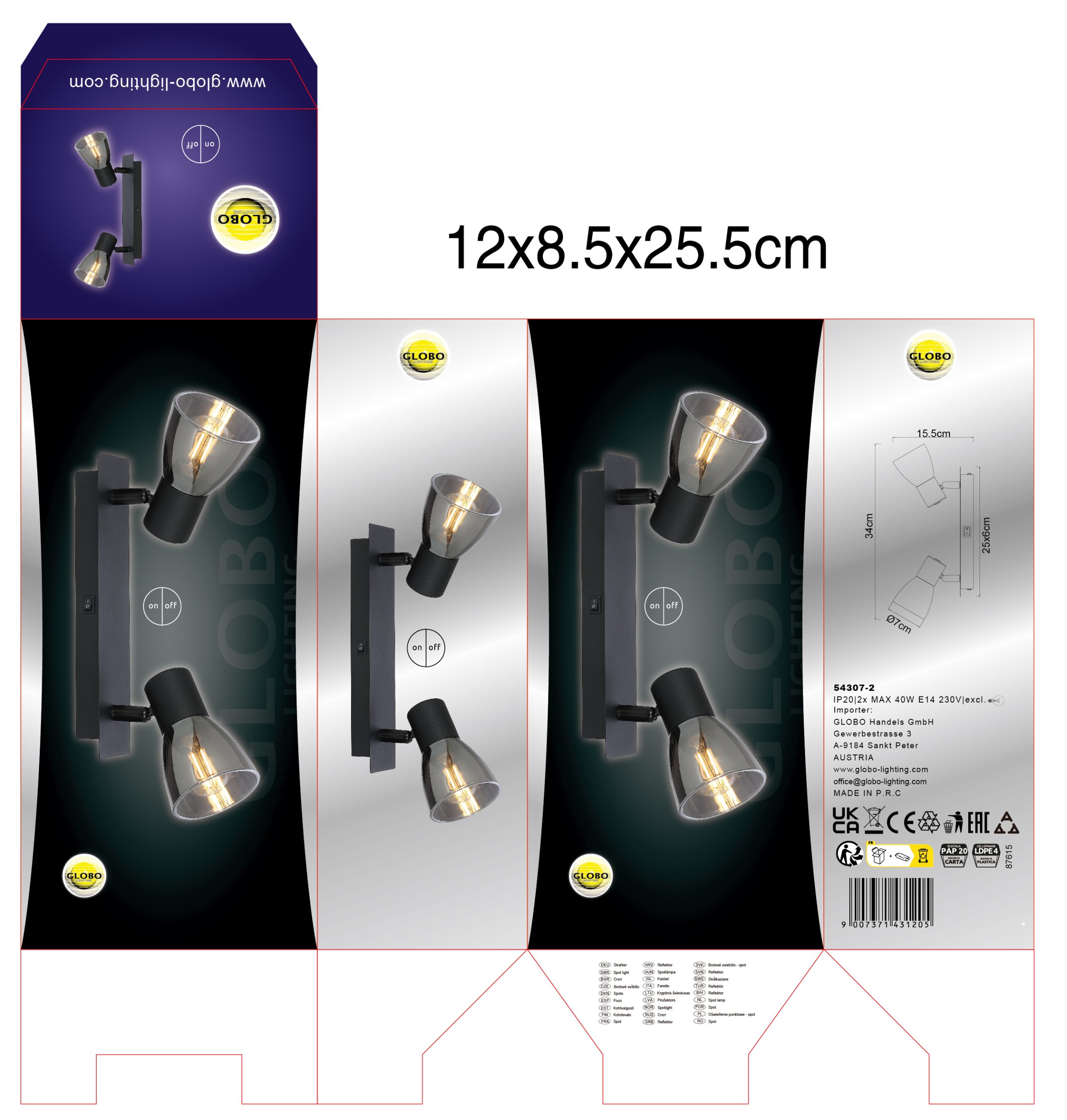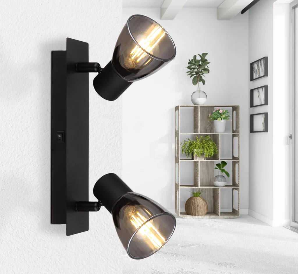 Ovaj prelepi reflektor iz serije Claude u crnom metalu inspiriše odličnim dizajnom. Na pravougaonom plafonskom nosaču (25×7 cm) nalaze se dva grla E14, svako sa prelepim staklenim abažurom u bojama dima (Ø7 cm). Svetiljka se uključuje i isključuje pomoću prekidača za uključivanje/isključivanje. Grlo E14 vam daje mogućnost da podesite boju svetlosti i osvetljenost do maksimalne snage od 40 vati. Sa drugim modelima ove serije možete divno upotpuniti svoj dnevni boravak.
