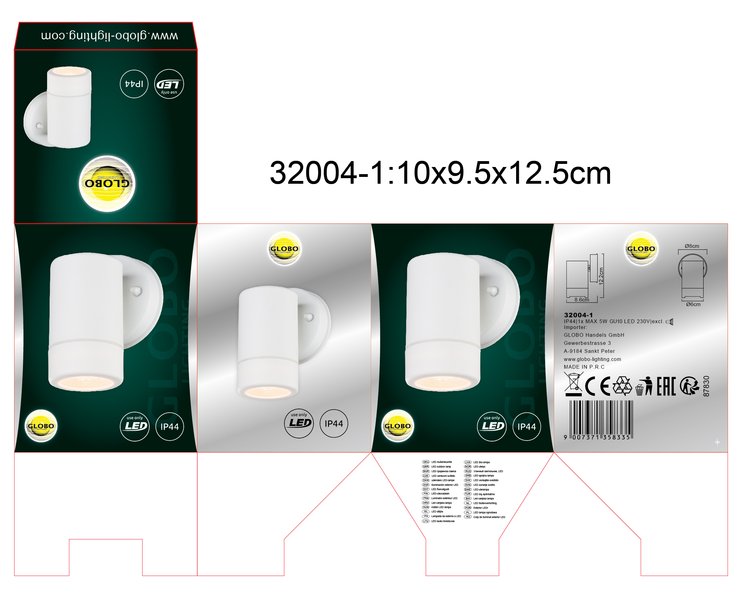 Ova moderna spoljna lampa pripada seriji Kotopa i napravljena je od bele i providne plastike. Opremljena je zaštitnom klasom IP44, idealna je za spoljnu upotrebu. Postojeće GU10 grlo svetli nadole i može biti opremljeno samo LED sijalicom. Sa još lepšim zidnim lampama ove serije možete upotpuniti sliku u svom spoljašnjem prostoru.