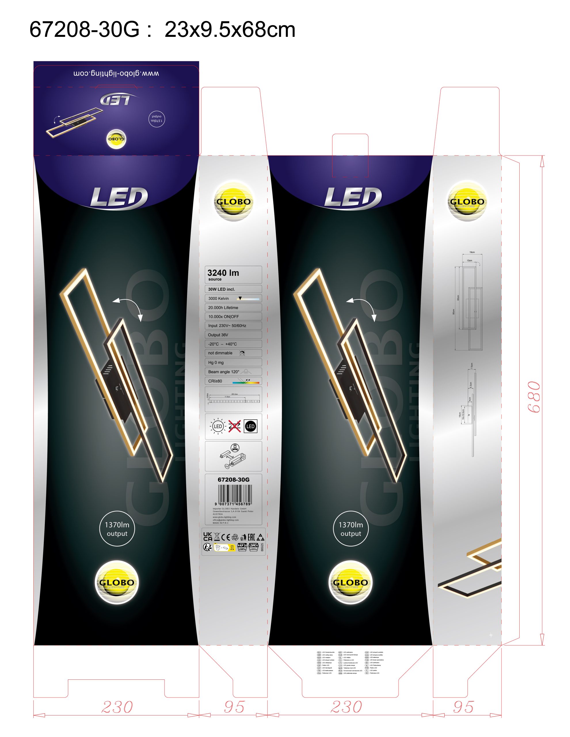 Otkrijte stilsku plafonsku lampu napravljenu od crnog mat metala, aluminijuma u crnoj i zlatnoj boji i plastike u opalnom izgledu. Sa dimenzijama 800x600x75 mm i pravougaonim dimenzijama 13×60 cm, ova lampa nudi moderan i elegantan dizajn. Plafonska lampa je već opremljena LED sijalicama snage 30 W i 230 V. One proizvode osvetljenost izvora od 3240 lm i izlaznu snagu od 1370 lm sa bojom svetlosti od 3000 K. Idealna za prostorije kao što su dnevna soba, trpezarija ili hodnik, ova svetiljka stvara prijatnu atmosferu. Naručite ovu visokokvalitetnu i energetski štedljivu plafonsku lampu sada i dozvolite sebi da se uverite u njen ekskluzivni dizajn i sjaj.