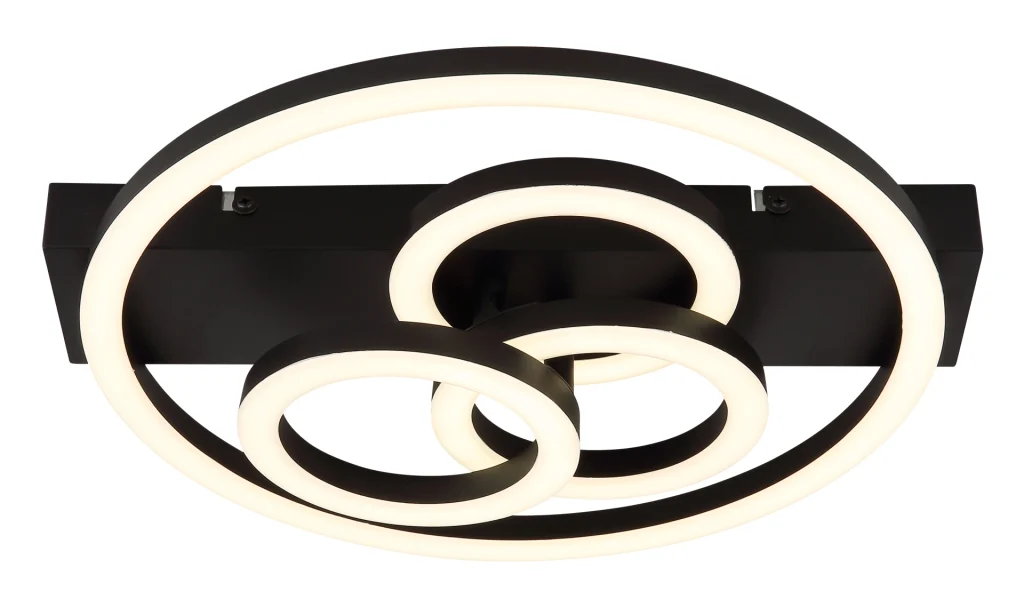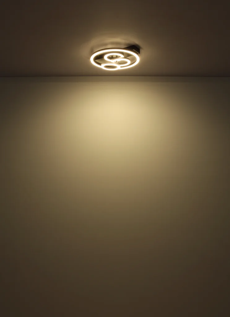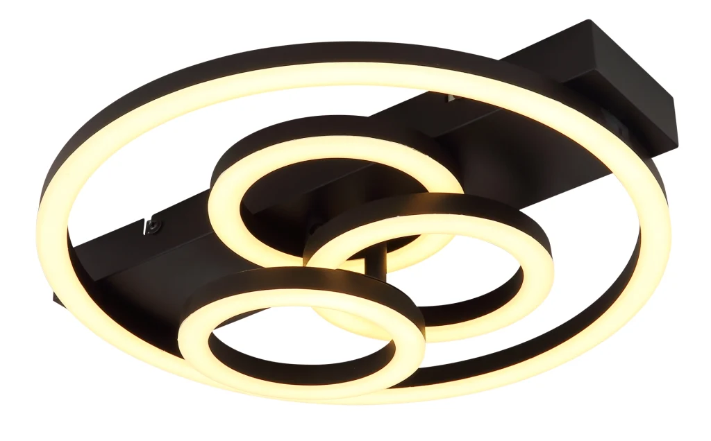 Plafonska lampa TRIAS pravougaonog dizajna sa četiri pričvršćena prstena nudi stilsko rešenje za osvetljenje. Crno metalno kućište i abažur od plastike u crnoj, mat i akril-opal boji stvaraju moderan dizajn. Sa svetlosnim izlazom od 2150 lumena i CCT-om od 3000K do 6500K, ova svetiljka nudi prilagodljivu temperaturu svetlosti. Funkcija dimiranja i funkcija memorije vam omogućavaju da sačuvate i podesite željeno raspoloženje osvetljenja.