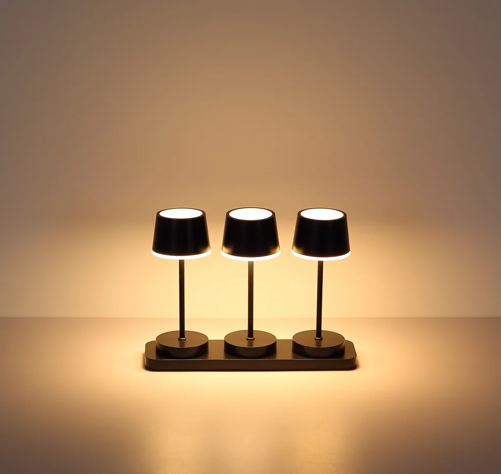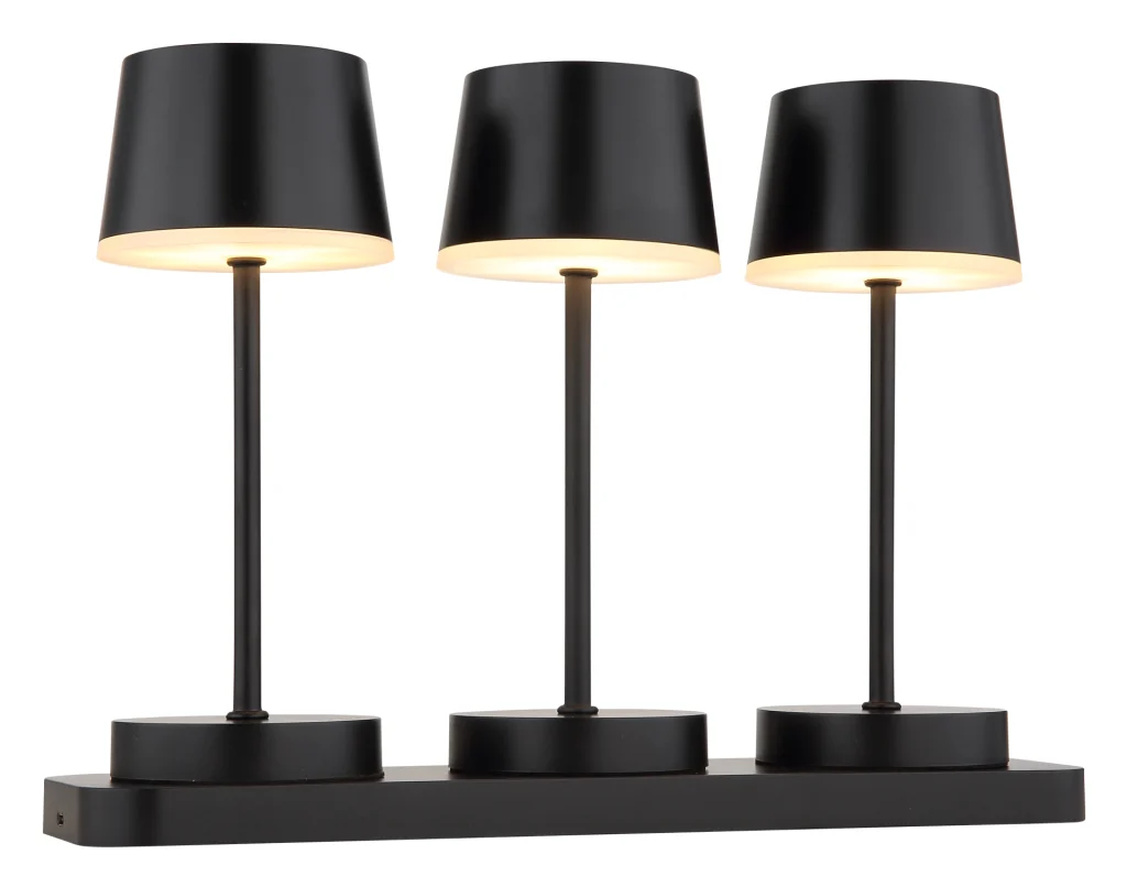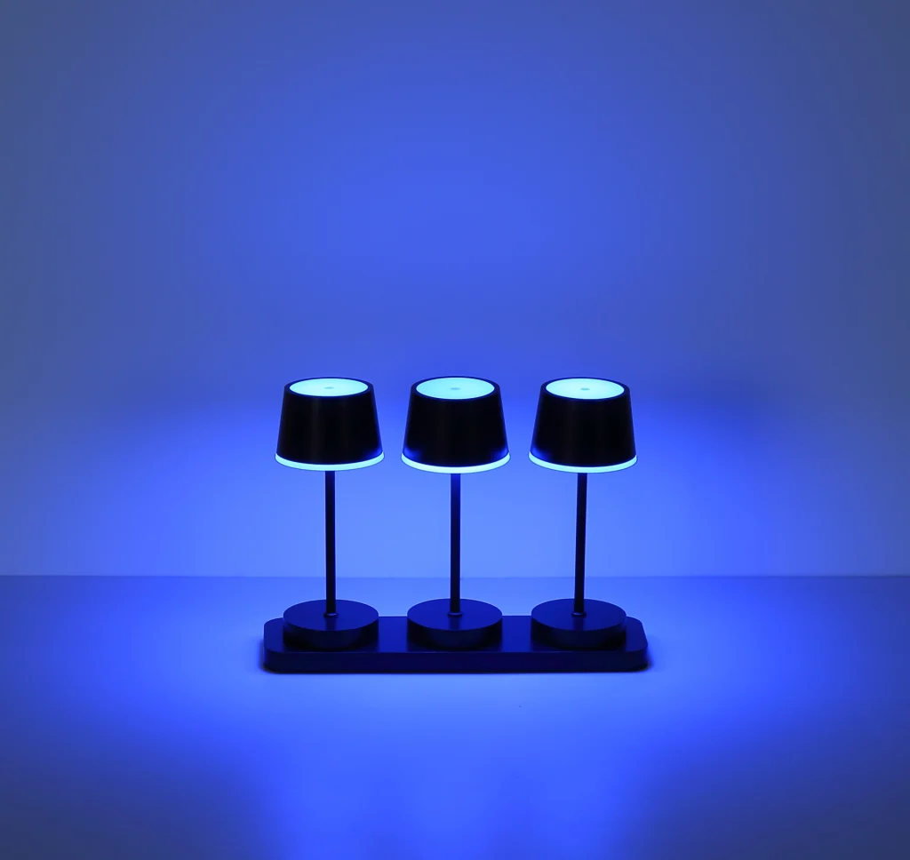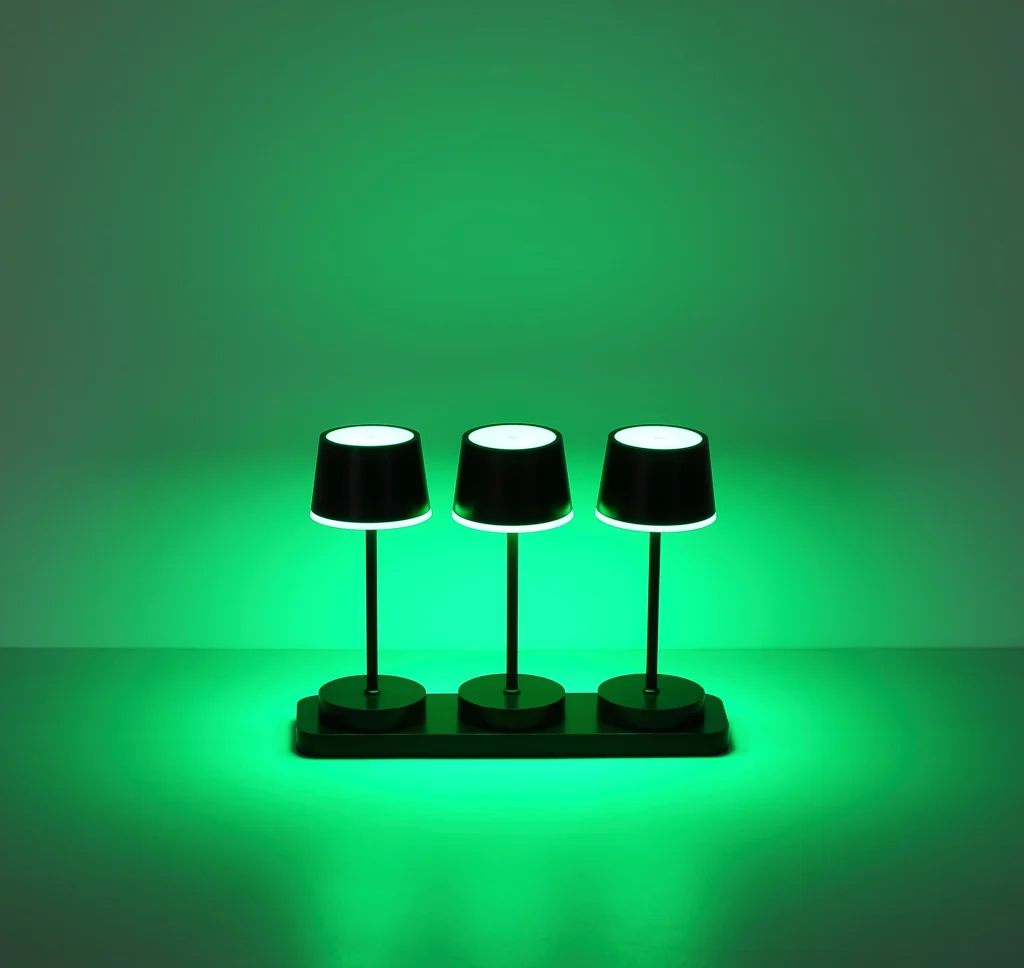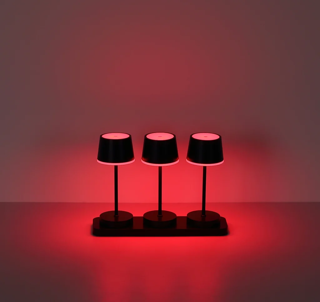 Komplet stonih lampi DAWSON od 3 dela impresionira modernim dizajnom, inovativnom tehnologijom i praktičnom doking stanicom za istovremeno punjenje sve tri lampe. Okrugle lampe imaju mat crno metalno kućište sa crnim i opalnim plastičnim abažurima, kombinujući stilski izgled sa visokom funkcionalnošću. Svaka lampa isporučuje 210 lumena i može se bezstepeno prigušiti pomoću dodirnog dimera, što vam omogućava da kreirate personalizovane raspoloženja osvetljenja u kratkom roku. Ugrađena RGB promena boja nudi različite boje svetlosti koje se mogu fiksirati po želji. Funkcija memorije pamti vaše poslednje podešavanje. Kontrola je jednostavna putem daljinskog upravljača ili direktno pomoću dodirnog uključivanja/isključivanja. Sa IP54 zaštitom, lampe su pogodne i za zaštićenu upotrebu na otvorenom. Uključeni su praktična doking stanica za sve tri lampe, adapter i USB kablovi za punjenje. Ugrađena RGBW LED dioda pruža žive boje i prijatno belo svetlo. DAWSON je savršen izbor za moderan dizajn osvetljenja – u zatvorenom ili na otvorenom.