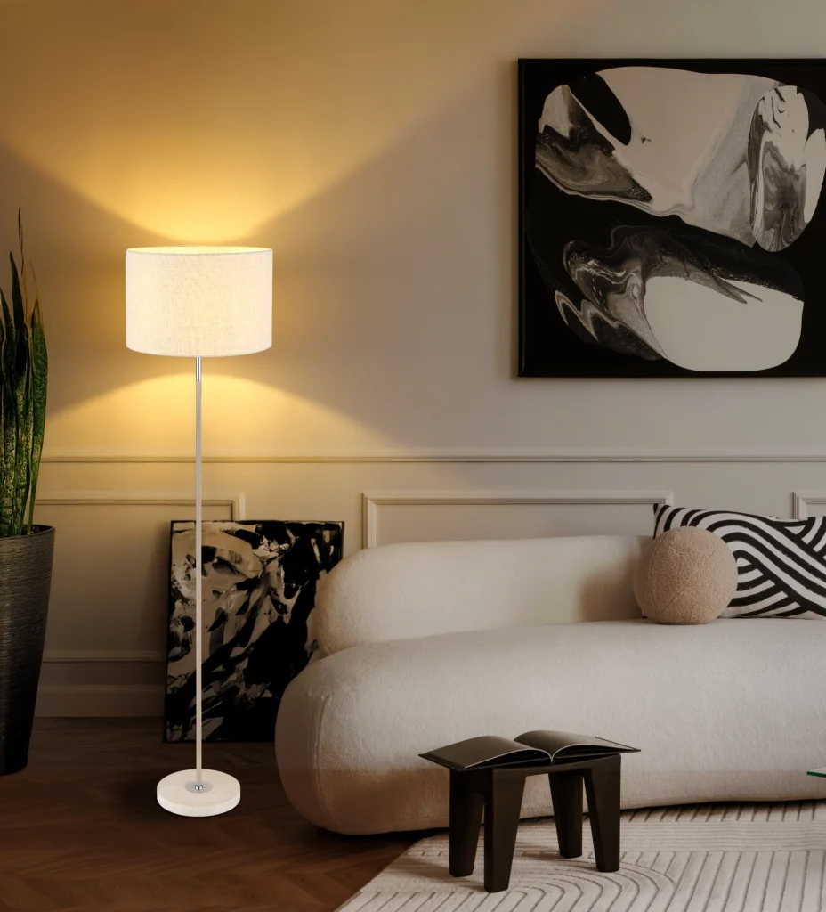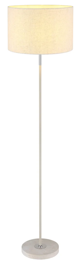 Podna lampa DELEON kombinuje tradicionalnu eleganciju sa modernim dizajnom. Njeno okruglo telo napravljeno od mat metala boje peska i hromiranih akcenata zrači bezvremenskim kvalitetom. Tekstilni abažur krem boje stvara toplu i prijatnu atmosferu osvetljenja. Kombinacija metala i žutog travertina čini ovu lampu pravim atrakcijom u svakoj prostoriji. Sa prečnikom od 400 mm, podna lampa se harmonično uklapa u različite stilove enterijera. Nožni prekidač na kablu obezbeđuje lako rukovanje. Snaga lumena je navedena bez sijalice E27, što vam omogućava da izaberete savršen izvor svetlosti. Podna lampa DELEON predstavlja visokokvalitetnu izradu i tradicionalnu umetnost osvetljenja – idealna za dodavanje posebnog dodira vašem domu.