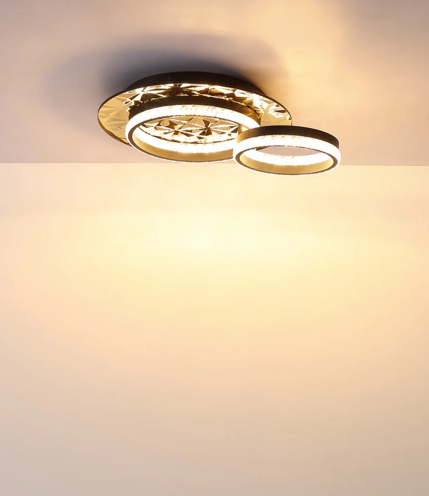 Plafonska lampa DELLA II impresionira svojim inovativnim dizajnom i visokokvalitetnom izradom. Okrugla lampa je ukrašena pomerajućim, pokretnim prstenom koji stvara dinamičan, moderan izgled. Telo napravljeno od mat crnog metala i nerđajućeg čelika zlatne boje daje lampi elegantan dodir. Crni, mat aluminijumski abažur obezbeđuje ravnomernu raspodelu svetlosti, dok providni plastični kristali pružaju fascinantne refleksije svetlosti. Sa svetlosnim izlazom od 845 lumena i temperaturom boje od 3000 K, lampa stvara toplu i prijatnu atmosferu u vašoj sobi. DELLA II dolazi sa dugotrajnom, integrisanom LED diodom koja pruža efikasno osvetljenje. Ova plafonska lampa je savršena za moderne dnevne sobe, trpezarije ili hodnike i postavlja stilske akcente koji ulepšavaju vaš dom.