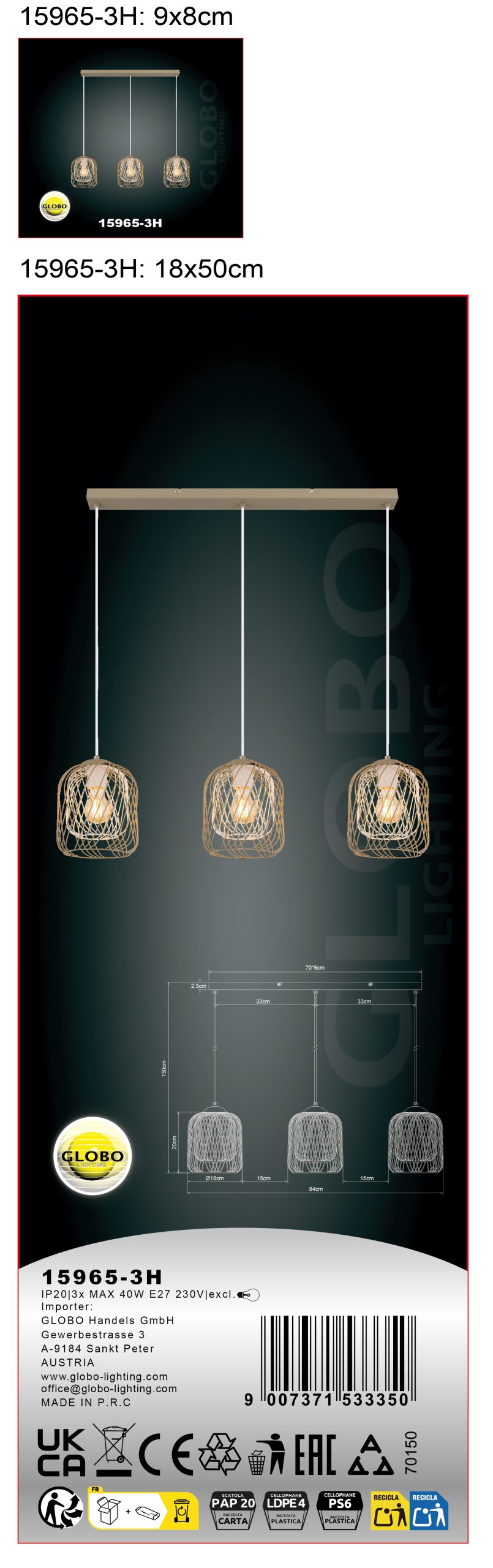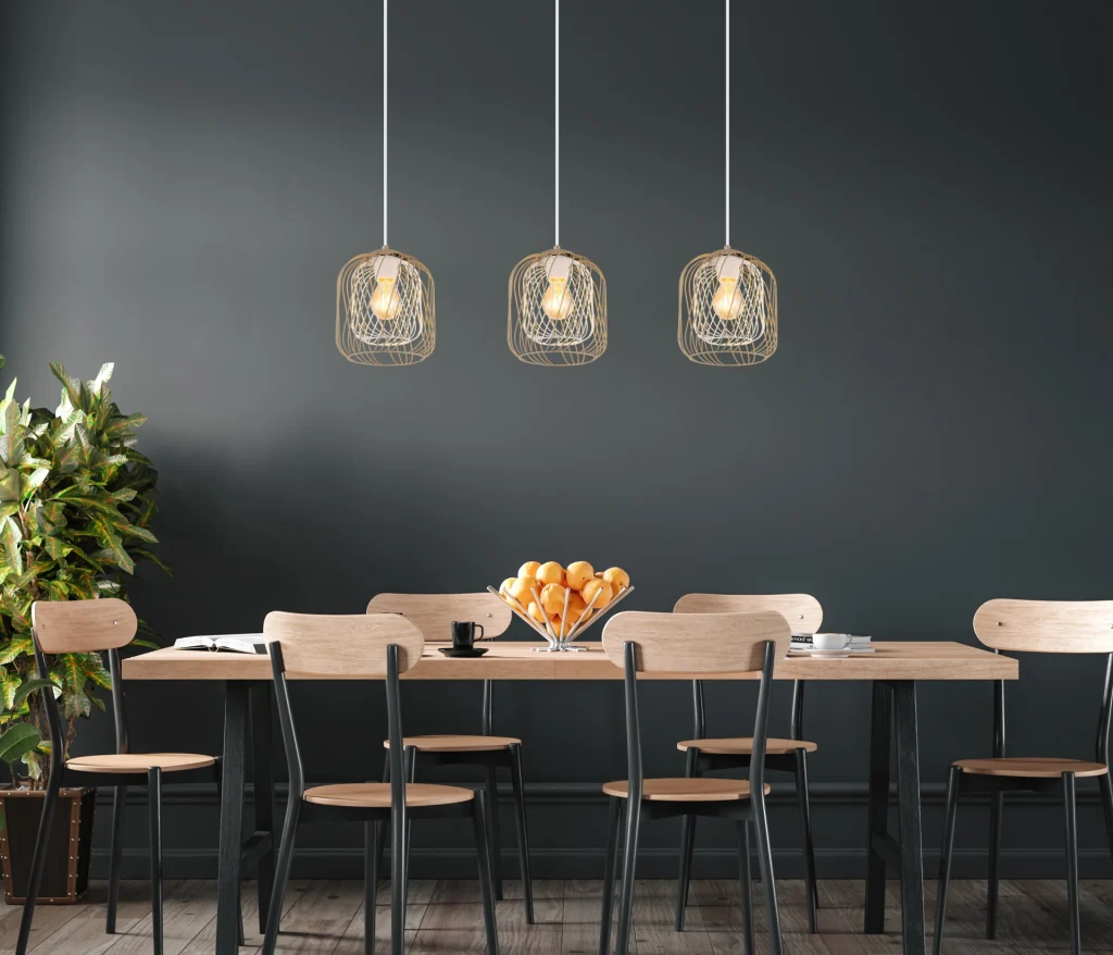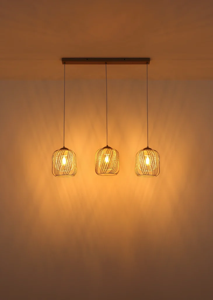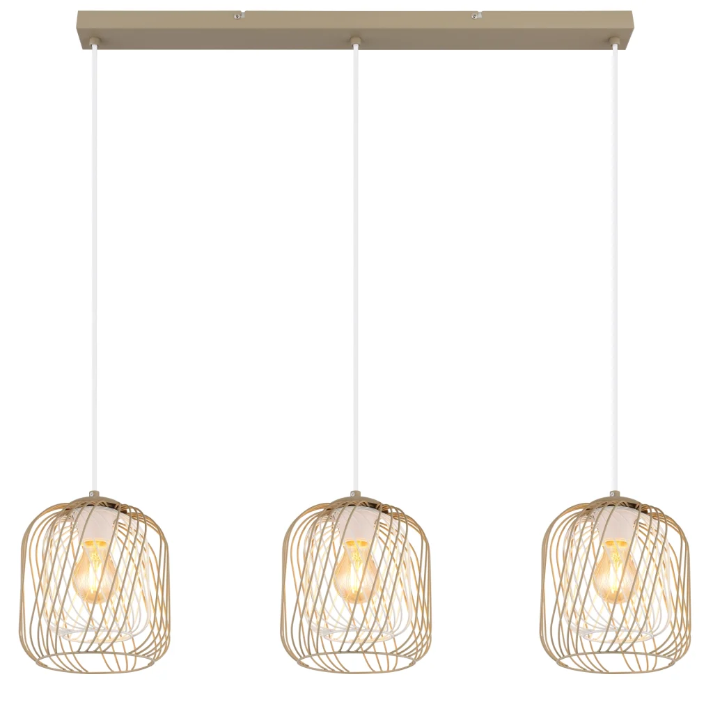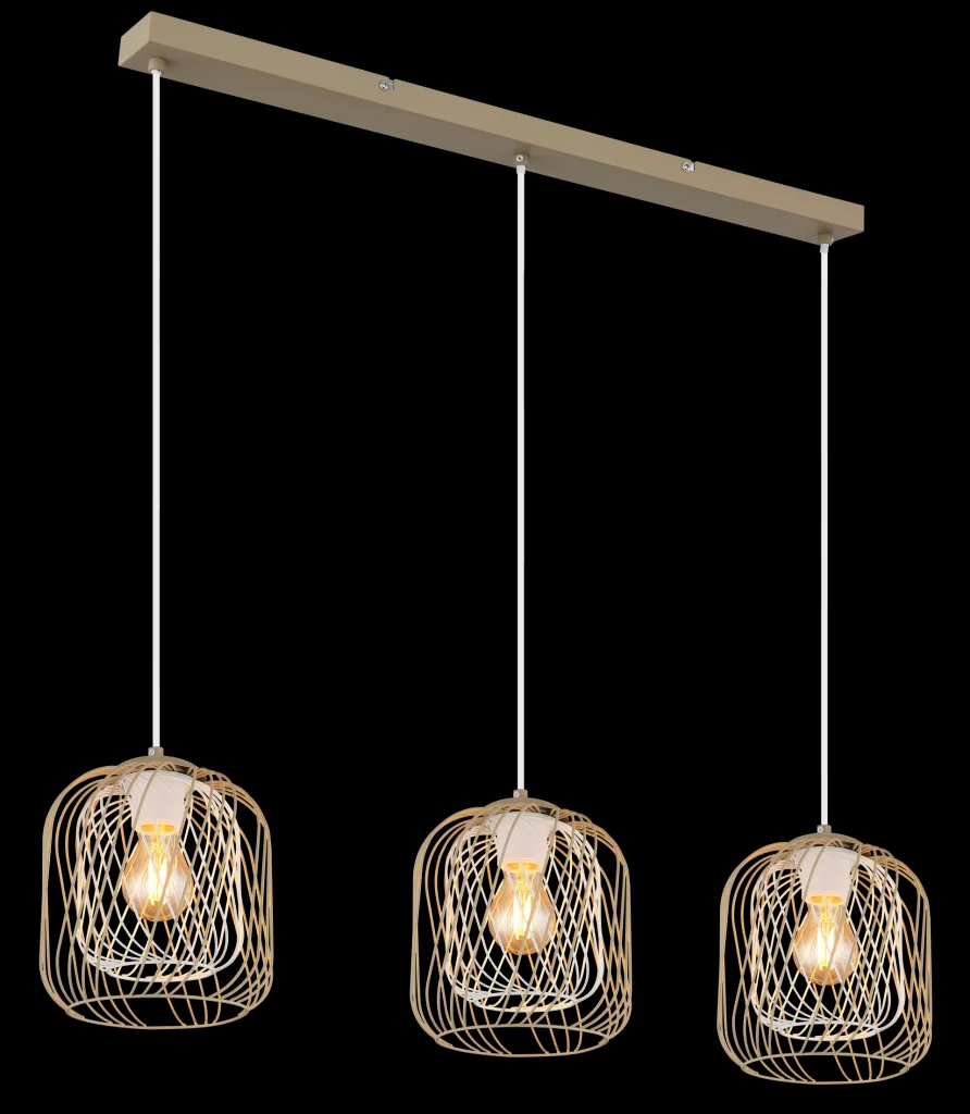 Viseća lampa DICHTI sa ravnom šinom i tri sijalična metalna abažura od mreže je stilsko rešenje za osvetljenje u vintage dizajnu. Telo napravljeno od mat metala boje peska obezbeđuje mek, moderan izgled, dok metalni abažuri od mreže u boji peska i mat beloj završnoj obradi omogućavaju harmoničnu raspodelu svetlosti. Kišobrani su opremljeni unutrašnjim abažurima koji nežno filtriraju svetlost i stvaraju prijatnu atmosferu. Sa dužinom od 840 mm i širinom od 180 mm, ova lampa je idealna za izdužene prostorije ili kao akcentno osvetljenje iznad trpezarijskih stolova. Viseća lampa DICHTI je opremljena sa tri E27 grla, što vam daje slobodu da izaberete sijalice prema vašim željama. Lampa se isporučuje bez E27 sijalice, tako da možete izabrati pravi intenzitet svetlosti za svoje potrebe. Elegantan i funkcionalan dodatak svakom domu.