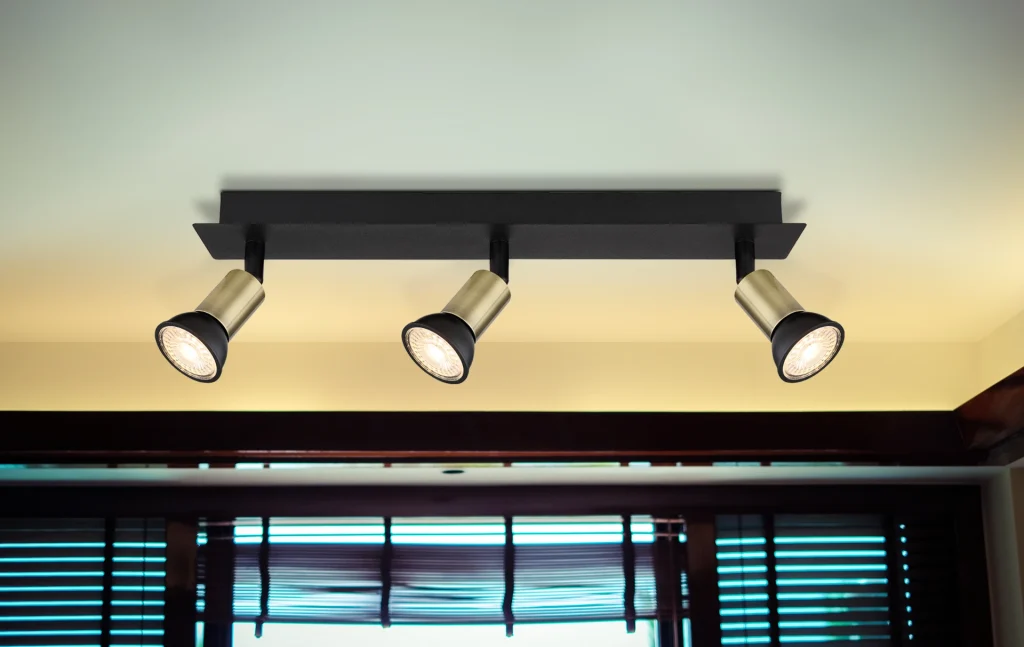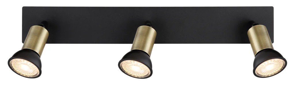 Ovaj jednostavni plafonski reflektor iz serije Dru impresionira svojim plemenitim dizajnom. Okretni reflektor napravljen od metala u crnoj i zlatnoj boji opremljen je sa tri GU10 grla i dužine je 40 cm. Slobodnim izborom izvora svetlosti možete odrediti sopstvenu boju i jačinu svetlosti do maksimalne snage od 35 vati. Zbog uštede energije i dugotrajnosti, preporučujemo LED lampe.