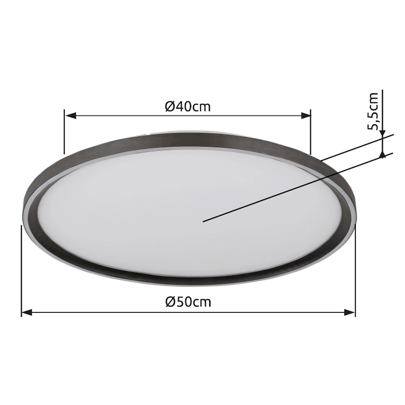 Okrugla i ravna plafonska LAMPA od brušenog aluminijuma u sivoj boji je najsavremenije i elegantno rešenje za osvetljenje vašeg životnog prostora. Sa prečnikom od 500 mm i snažnom LED diodom od 48 W, ova plafonska lampa nudi impresivan svetlosni izlaz od 2400 lumena. Abažur napravljen od opal akrila sa antičko belim silikonskim obodom obezbeđuje prijatnu i ravnomernu raspodelu svetlosti u prostoriji. Ova PLAFONSKA LAMPA se može prigušiti i omogućava vam da pojedinačno podesite osvetljenost preko nekoliko nivoa pomoću zidnog prekidača. Boje se mogu fiksirati, a može se koristiti čak i funkcija memorije. Daljinski upravljač vam daje potpunu kontrolu nad osvetljenjem. Pored toga, lampa ima praktično noćno svetlo. Podesivi opseg temperature boje od 2700K do 6000K vam daje mogućnost da podesite boju svetlosti prema vašim željama. PLAFONSKA LAMPA OD BRUŠENOG ALUMINIJUMA SIVE kombinuje funkcionalnost i stilski dizajn do savršenstva.