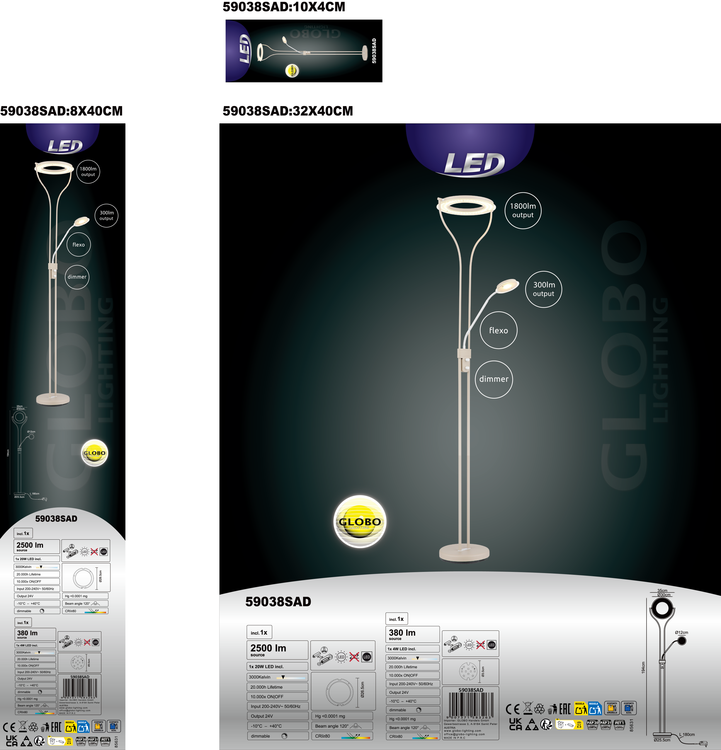 Postavite novi vrhunac u svoju dnevnu sobu ovom podnom lampom iz EBRO serije i uverite se u njenu svetlost i harizmu. Podna lampa je napravljena od metala, a stakla su od satenskog akrila. Da biste imali savršeno osvetljenje tokom čitanja, lampa za čitanje je opremljena fleksibilnom granom. Savršeno osvetljenje u prostoriji obezbeđuje reflektor, koji se može rotirati po želji. Toplo bela svetlost od 3000 Kelvina stvara prijatnu atmosferu.