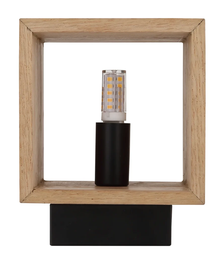 Zidna lampa EDWIN impresionira jasnim linijama, prirodnim materijalima i modernim dizajnom, postajući stilski akcenat u vašem životnom prostoru. Kubično telo napravljeno od mat crnog metala stvara elegantan kontrast sa toplo smeđim drvenim abažurom i daje svetlu bezvremenski, visokokvalitetan izgled. Kvadratni oblik ističe moderan karakter i čini EDWIN idealnim dodatkom savremenim i prirodom inspirisanim stilovima enterijera. Sa širinom od 110 mm i projekcijom od 135 mm, ova zidna lampa je savršena kao dekorativno dodatno osvetljenje u hodnicima, dnevnim sobama, spavaćim sobama ili pored ogledala i slika. Emisija svetlosti nagore i nadole stvara prijatno indirektno osvetljenje i postavlja atraktivne svetlosne akcente na zid. Zahvaljujući G9 grlu, možete slobodno birati izvor svetlosti i prilagođavati osvetljenost i temperaturu boje svojim ličnim željama. Izaberite EDWIN za moderan dizajn, prirodne materijale i stilsko osvetljenje sa karakterom.