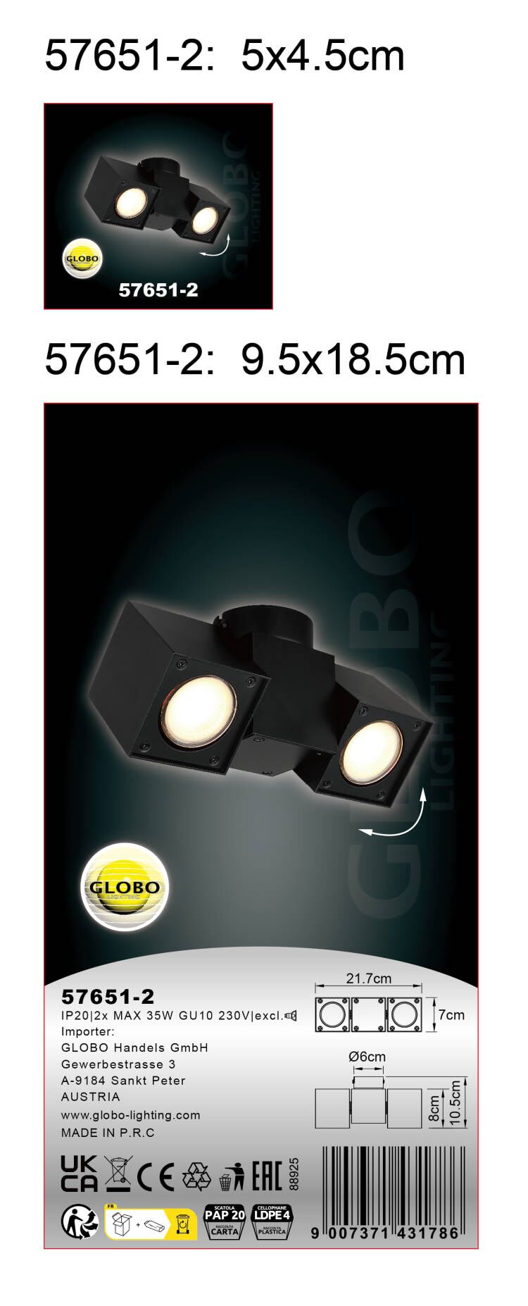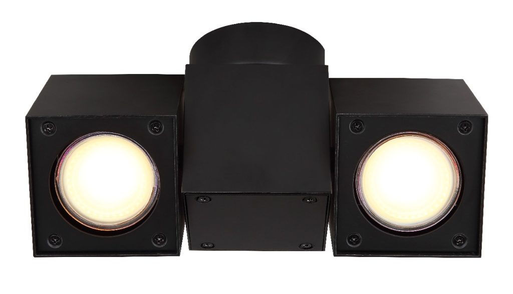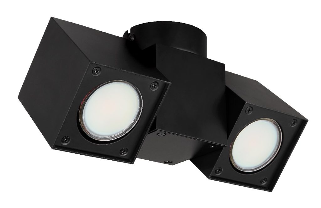 Ova moderna plafonska lampa serije RORY inspiriše stilskim dizajnom. U apstraktnom obliku, na pravougaonom plafonskom nosaču formirana su dva kućišta (26 x 8 cm) od crnog aluminijuma i metala. U svakom od dva pravougaonika nalazi se GU10 grlo, koje vam omogućava da odredite boju svetlosti i osvetljenost, do maksimalne snage od 5 vati. Zbog dugotrajnosti i uštede energije, preporučujemo LED sijalice.