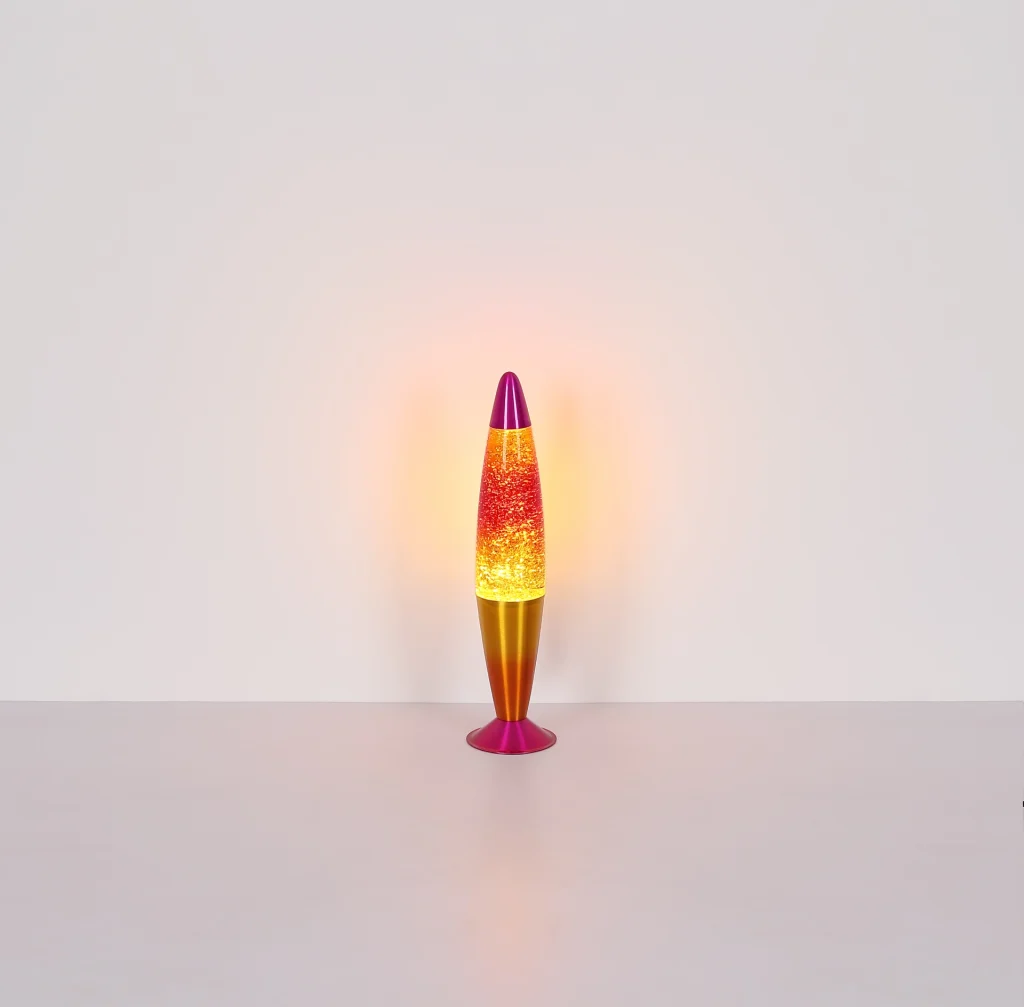 Stona lampa ETNA inspiriše svojim izvanrednim raketnim dizajnom i šarenim akcentima. Telo napravljeno od šarenog aluminijuma u kombinaciji sa žuto-narandžastim staklenim abažurom čini je zaista privlačnom za pažnju. Sa prečnikom od 97 mm i praktičnim prekidačem na kablu, jednostavna je za upotrebu. Integrisana lampa sa šljokicama ubeđuje providnom tečnošću i srebrnim aluminijumskim šljokicama, koje stvaraju impresivne efekte kada se osvetle. Savršena za dečije sobe ili kreativne kutke, ETNA unosi svetlost i boju u svaku prostoriju. Ova stona lampa kombinuje funkcionalno osvetljenje sa veselim dizajnom koji podstiče maštu i stvara živu atmosferu.
