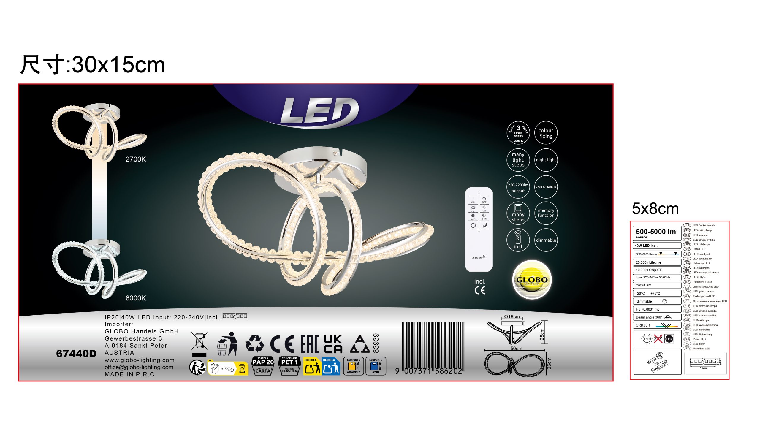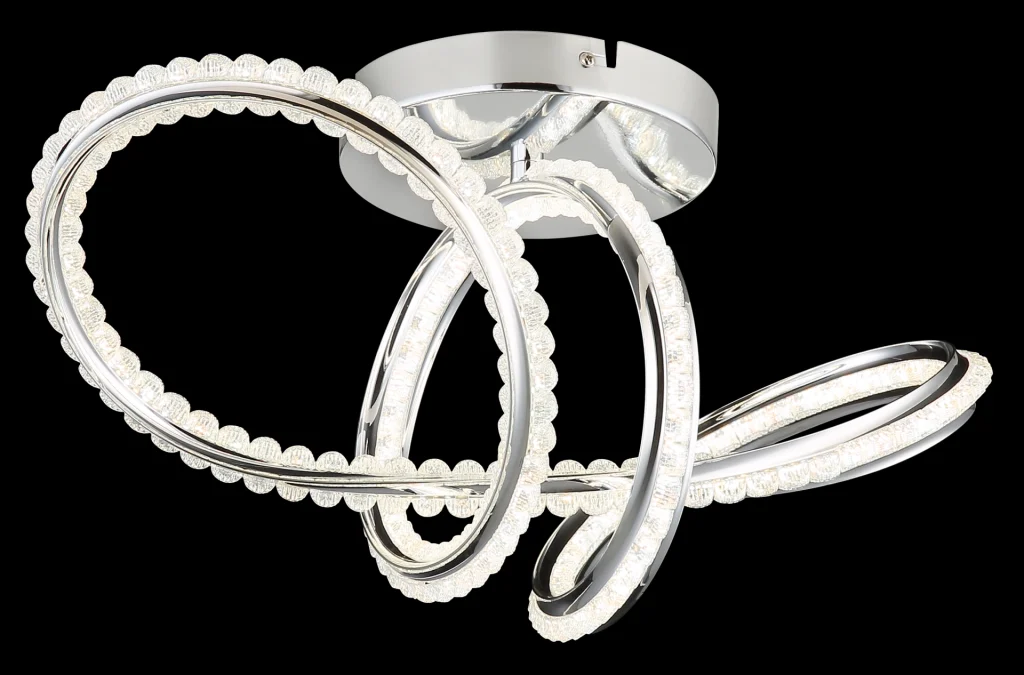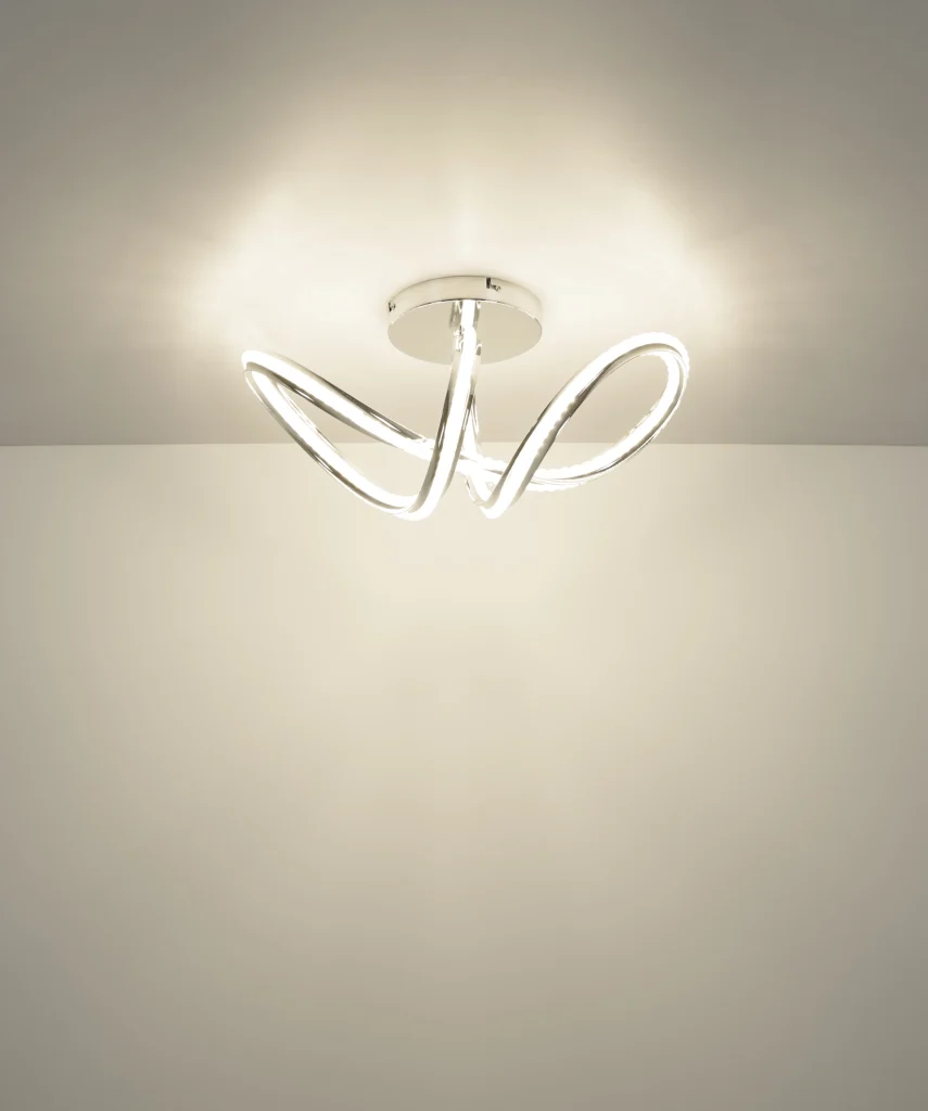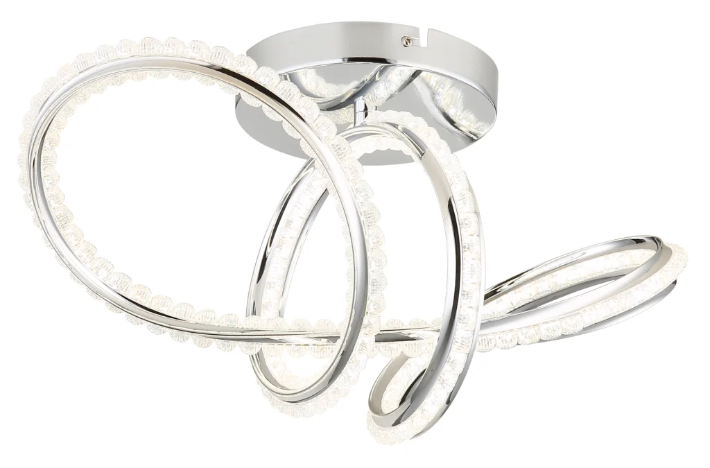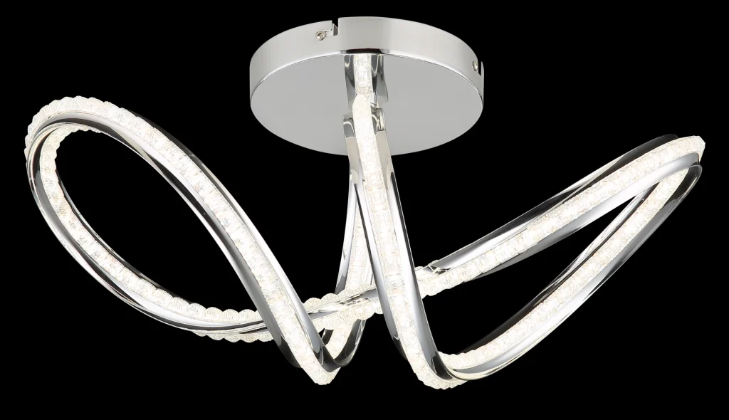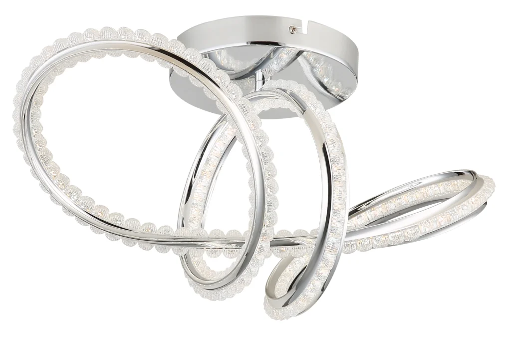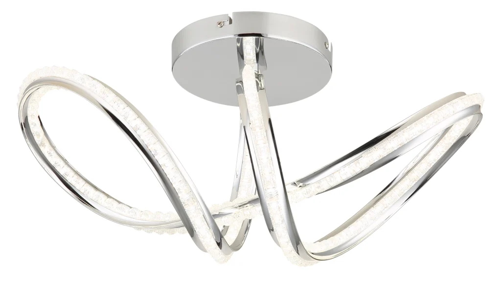 Zakrivljena plafonska lampa impresionira svojim modernim dizajnom sa elegantnim petljama i čvorovima. Hromirano metalno kućište daje visokokvalitetan, sjajan izgled, dok hromirani aluminijumski abažur u kombinaciji sa providnim akrilom obezbeđuje ravnomernu i stilsku raspodelu svetlosti. Sa dužinom od 500 mm i širinom od 230 mm, ova lampa je idealna za dnevne sobe, trpezarije ili hodnike. Integrisana LED dioda (uključena) isporučuje 2000 lumena sa podesivom temperaturom boje od 2700 K do 6000 K. Sa daljinskim upravljačem, funkcijom prigušivanja, fiksnim bojama i funkcijom memorije, nudi maksimalnu fleksibilnost i udobnost. Integrisano noćno svetlo upotpunjuje njenu funkcionalnost. Ova lampa kombinuje moderan dizajn, inovativnu LED tehnologiju i vrhunske materijale kako bi stvorila stilsku fokusnu tačku u svakoj prostoriji.
