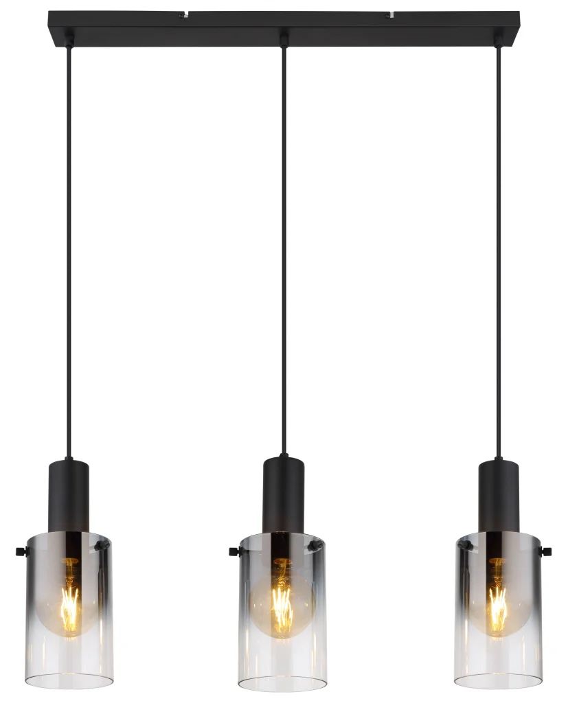 Viseća lampa FLORENTINA je stilski rasvetni predmet koji svojim modernim dizajnom i elegantnim materijalima postavlja akcente u svakoj prostoriji. Ravna šina od crnog mat metala sadrži tri viseća staklena cilindra, dizajnirana u fascinantnom dimljenom i čistom gradijentu. Ova kombinacija obezbeđuje harmoničnu raspodelu svetlosti i dodaje dašak sofisticiranosti vašem enterijeru. Idealna za trpezarijske stolove, kuhinjska ostrva ili dnevne sobe, FLORENTINA stvara privlačnu atmosferu koja vas poziva da se zadržite. Upotreba E27 grla vam omogućava da podesite intenzitet svetlosti i temperaturu boje prema vašim željama. Bilo da je topla i prijatna ili svetla i čista – sa ovom visećom lampom možete stvoriti pravo raspoloženje. FLORENTINA nije samo funkcionalna, već je i stilski dizajnerski element koji ulepšava svaku prostoriju. Unesite svetlost i eleganciju u svoj dom!