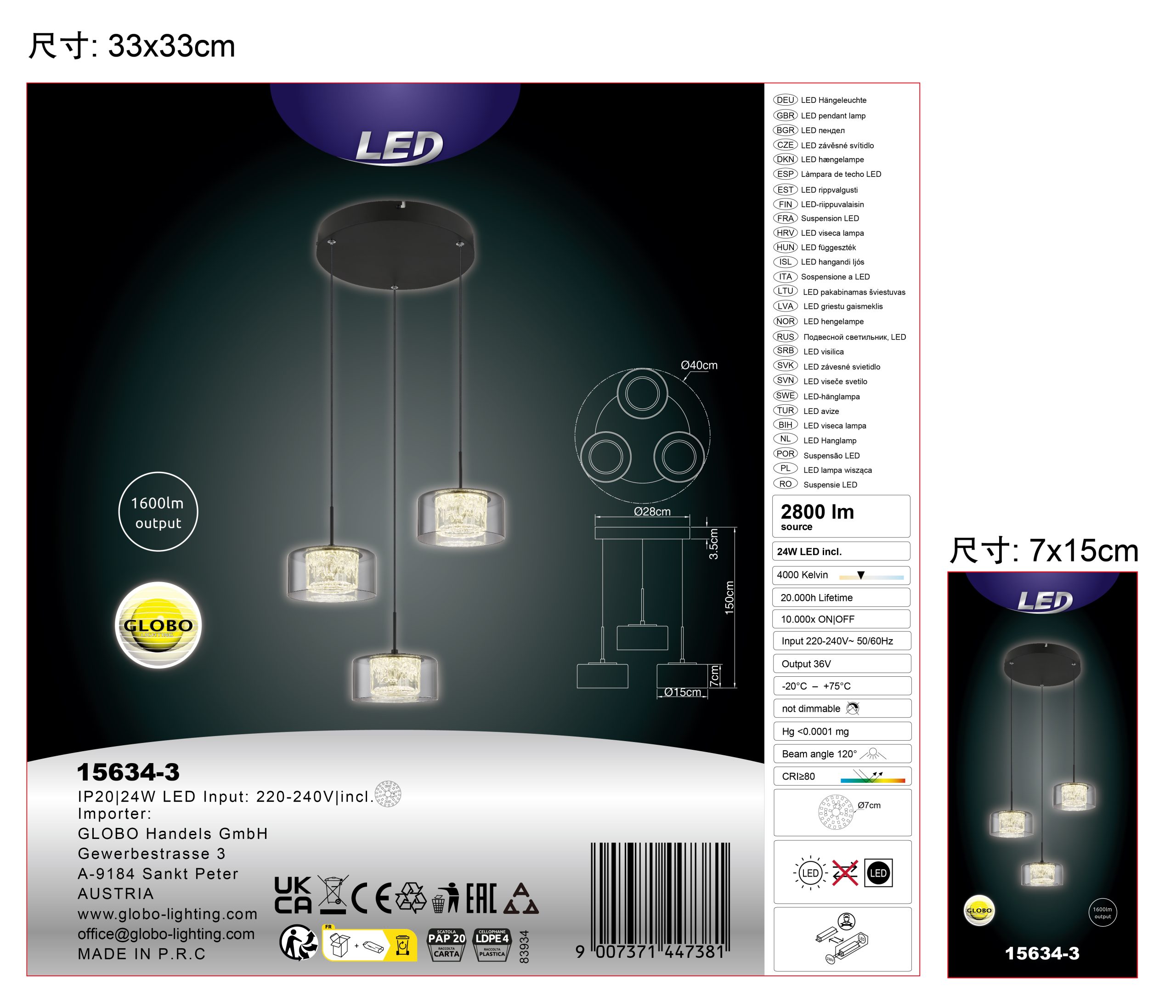 Okrugla viseća lampa u mat crnoj boji je stilski dodatak svakoj prostoriji. Sa tri vešalice i prečnikom od 400 mm, ova viseća lampa napravljena od crnog mat metala nudi prijatno osvetljenje i moderan dizajn. Kombinacija dimljenog stakla i providnog akrila daje lampi elegantan izgled. Zahvaljujući snažnom LED izvoru svetlosti od 24 W, viseća lampa proizvodi svetlosni fluks od 1600 lumena na temperaturi svetlosti od 4000 K. Ovo obezbeđuje prijatno i prirodno osvetljenje u svakoj prostoriji. Viseća lampa je posebno pogodna za upotrebu u trpezariji, dnevnoj sobi ili kuhinji i vešto postavlja scenu za svaku prostoriju. Bezvremenski i praktičan element za moderan dizajn doma.
