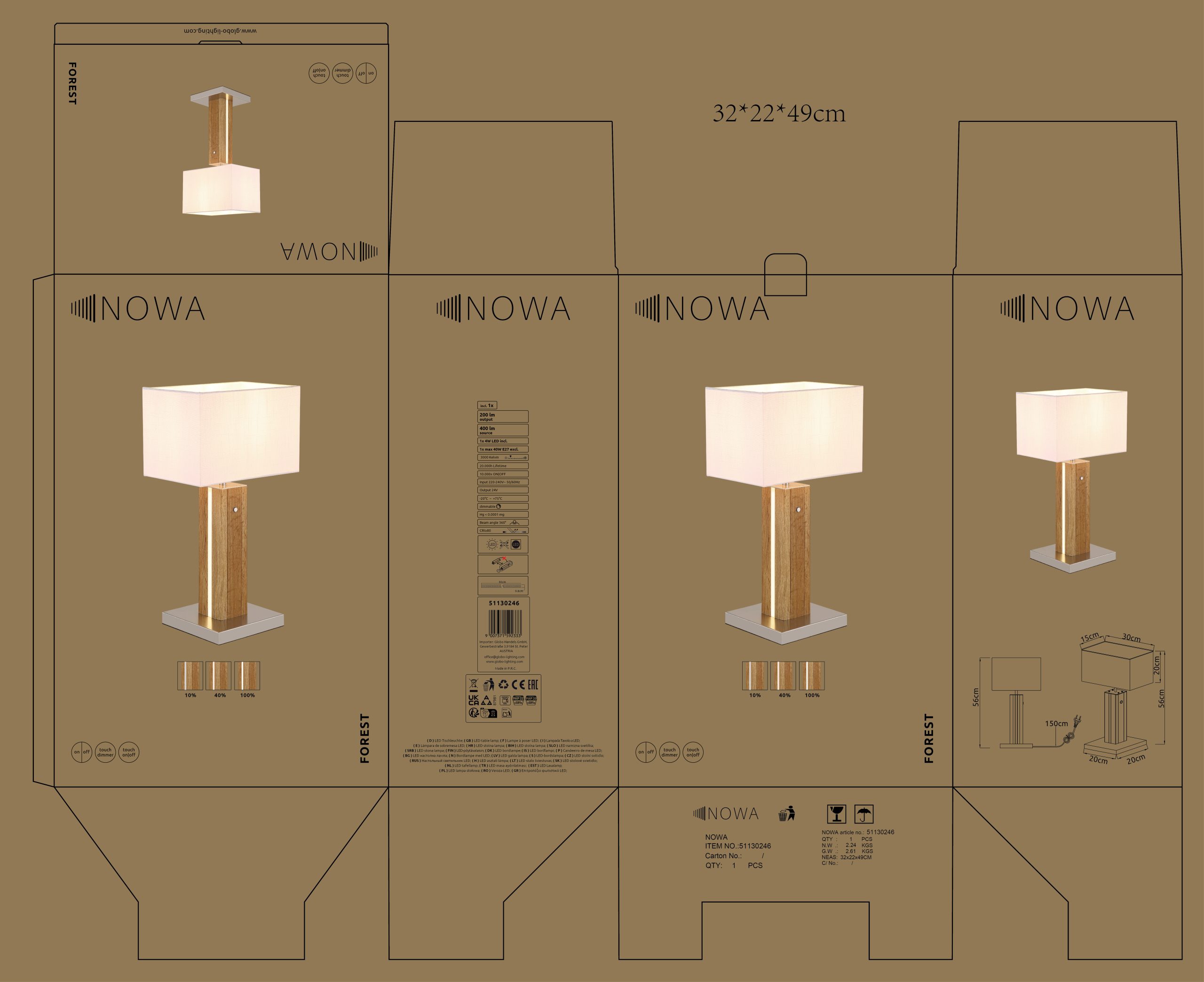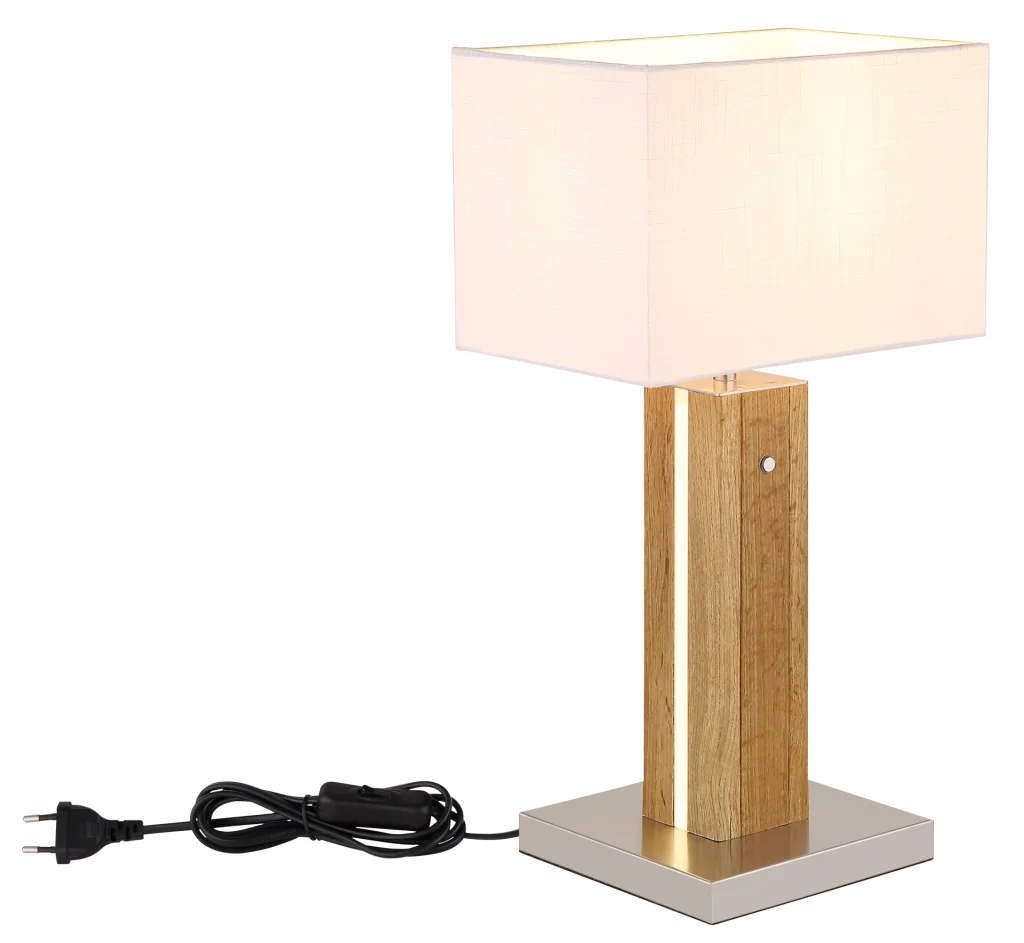 Stona lampa FOREST impresionira modernim dizajnom, inteligentnom tehnologijom i raznovrsnom funkcionalnošću, što je čini stilskim pratiocem za stolove, noćne stočiće ili komode. Pravougaono telo napravljeno od mat sivog i braon MDF-a, u kombinaciji sa elegantnim hromiranim metalnim elementima, daje lampi visokokvalitetan i bezvremenski izgled. Beli abažur od tkanine sa opalnom plastikom obezbeđuje prijatno meku raspodelu svetlosti i stvara ugodnu atmosferu. Poseban akcenat je integrisano LED osvetljenje u podnožju, koje se može uključivati odvojeno od E27 sijalice u abažuru, omogućavajući fleksibilno raspoloženje osvetljenja. Praktični dodirni dimer omogućava udobnu kontrolu osvetljenosti, dok dodirni uključivanje/isključivanje i dodatni prekidač na lampi obezbeđuju praktičan rad. Sa kompaktnim dimenzijama od 300 x 200 mm, FOREST se savršeno uklapa na manje površine, a istovremeno pruža efikasno osvetljenje. Zahvaljujući E27 grlu, možete slobodno birati izvor svetlosti i podešavati osvetljenost i temperaturu boje prema vašim željama. Izaberite stonu lampu FOREST za moderan dizajn, pametnu kontrolu osvetljenja i stilske akcente u vašem domu.
