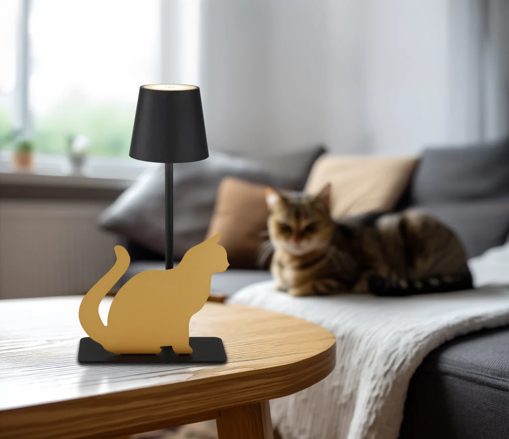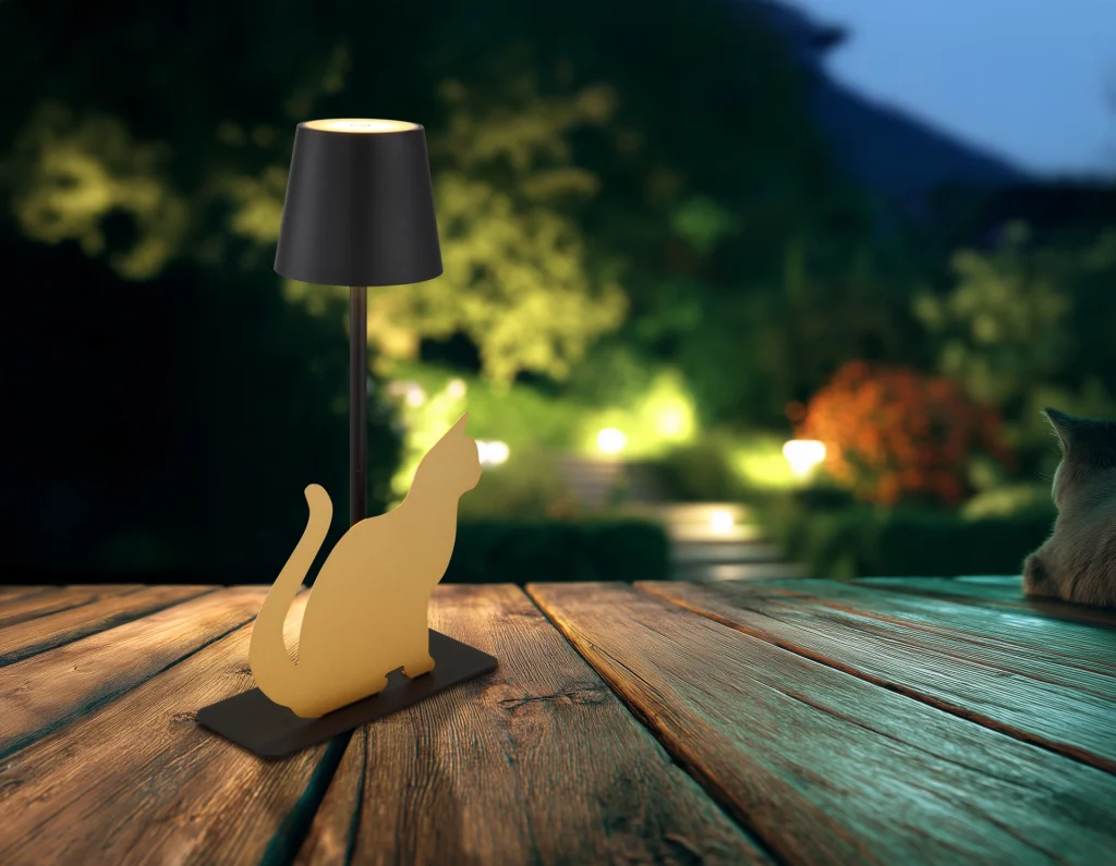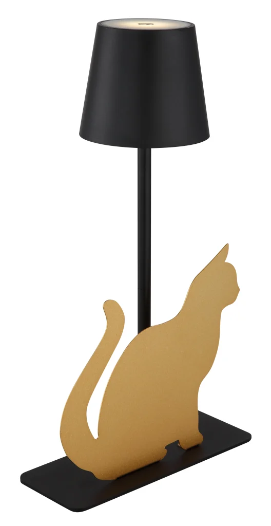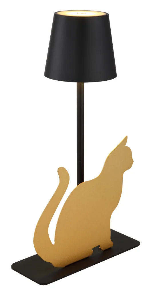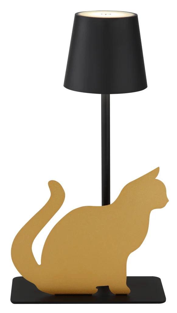 Postavite stilske akcente dekorativnom stonom lampom FURRI – sa razigranim motivom mačke! Moderni dizajn kombinuje mat crni metal sa elegantnim detaljima zlatne boje. Dvobojni plastični abažur pruža atmosfersko osvetljenje i može se podesiti od 3000 K do 5000 K zahvaljujući CCT funkciji – idealno za toplo ili hladno svetlo po potrebi. Integrisana LED dioda (200 lumena) može se kontinuirano regulisati pomoću dodirnog dimera, uključujući uključivanje/isključivanje na dodir, funkciju memorije i opciju fiksiranja boja svetla. Bilo da se koristi kao noćna lampa, dekoracija ili lampa za čitanje – FURRI impresionira svojom svestranošću. Zahvaljujući IP44 zaštiti, USB kablu za punjenje i adapteru, lampa se može koristiti i u pokretu. Svetli tokom punjenja, vreme punjenja je približno 4 sata i nudi do 6 sati osvetljenja. Neverovatno lep dodatak vašem domu!