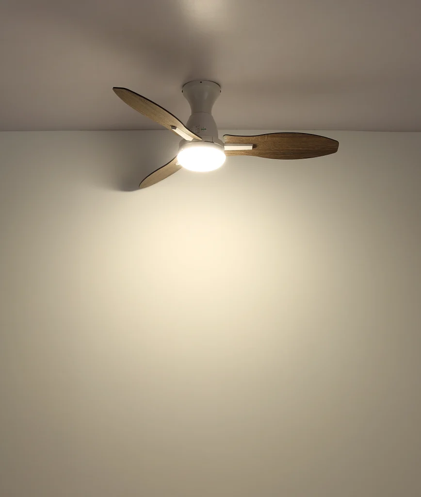 Plafonski ventilator GALE – moderan dizajn i pametne funkcije Okrugli plafonski ventilator GALE kombinuje stilski izgled sa inovativnom tehnologijom. Mat belo metalno kućište daje mu jednostavnu eleganciju, dok tri krila u svetlom ili tamnom izgledu drveta donose prirodan dodir konceptu prostorije. Opalni plastični abažur obezbeđuje ravnomernu raspodelu svetlosti bez odsjaja. Sa svetlosnim izlazom od 2100 lumena i CCT temperaturom boje od 3000 K do 6500 K, GALE omogućava fleksibilno osvetljenje po želji. Prigušive i fiksne boje, kao i funkcija memorije, obezbeđuju individualnu udobnost. Sa prečnikom od 1070 mm, ventilator obezbeđuje optimalnu cirkulaciju vazduha. Uključeni daljinski upravljač vam omogućava da praktično kontrolišete svetlo i ventilator. GALE je savršen izbor za svakoga ko traži stilsku i funkcionalnu kombinaciju osvetljenja i ventilacije!