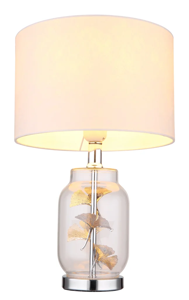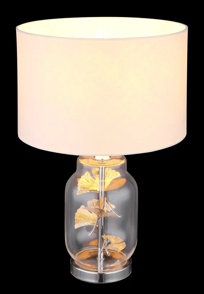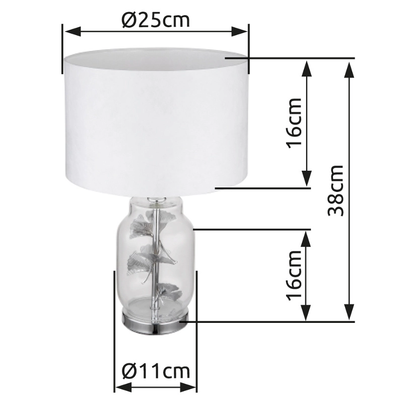 GINKO stona lampa sa okruglim postoljem i unutrašnjošću od providnog stakla sa dizajnom lista je elegantan i stilski dodatak za svaki sto. Hromirano metalno kućište daje lampi moderan izgled, dok okrugli beli tekstilni abažur pruža prijatnu difuziju svetlosti. Plastični elementi u beloj boji harmonično zaokružuju dizajn. Sa prekidačem na kablu, rukovanje svetiljkom je jednostavno i praktično. Prečnik lampe je 250 mm i nudi snagu od 40 W sa grlom E27, što obezbeđuje dovoljnu osvetljenost u vašem životnom prostoru. Ova stona lampa nije samo efikasan izvor svetlosti, već i dekorativni element koji će vašem domu dodati moderan dodir.